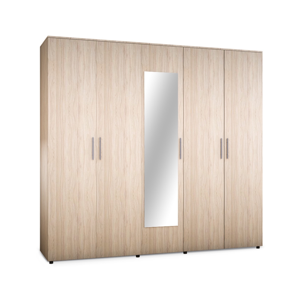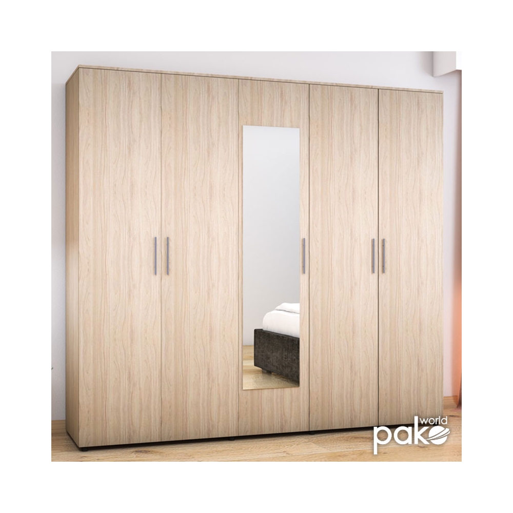 Ντουλάπα πεντάφυλη με καθρέπτη Luna σε απόχρωση astra (φυσικό)