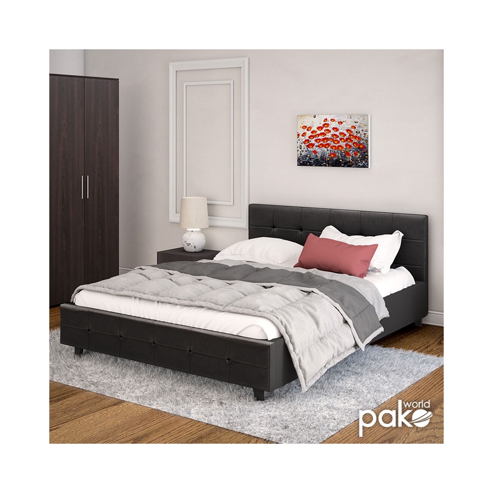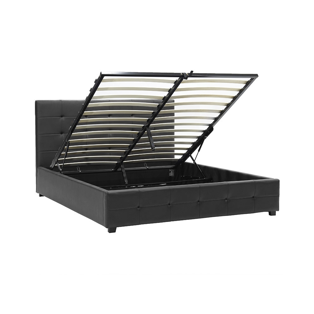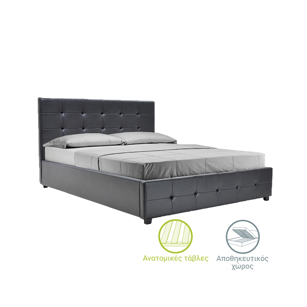 Διπλό κρεβάτι Roi, με αποθηκευτικό χώρο, σε μαύρο ματ τεχνόδερμα.