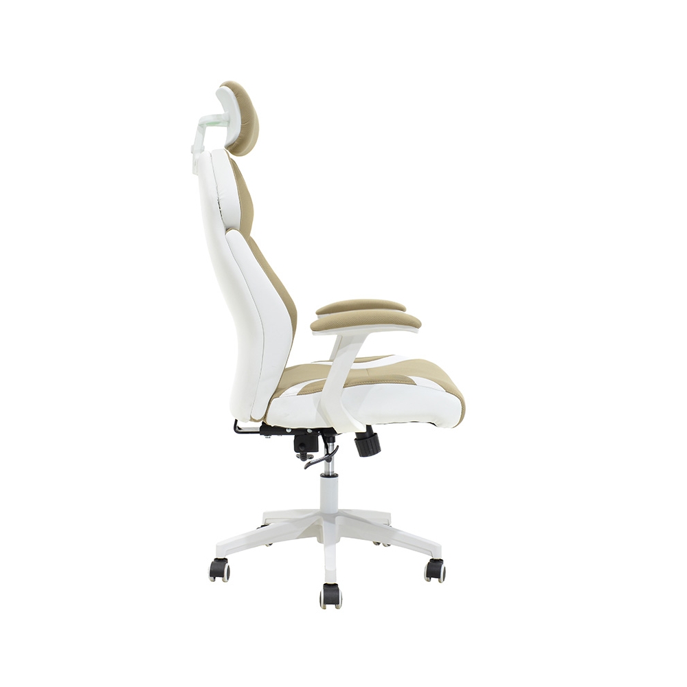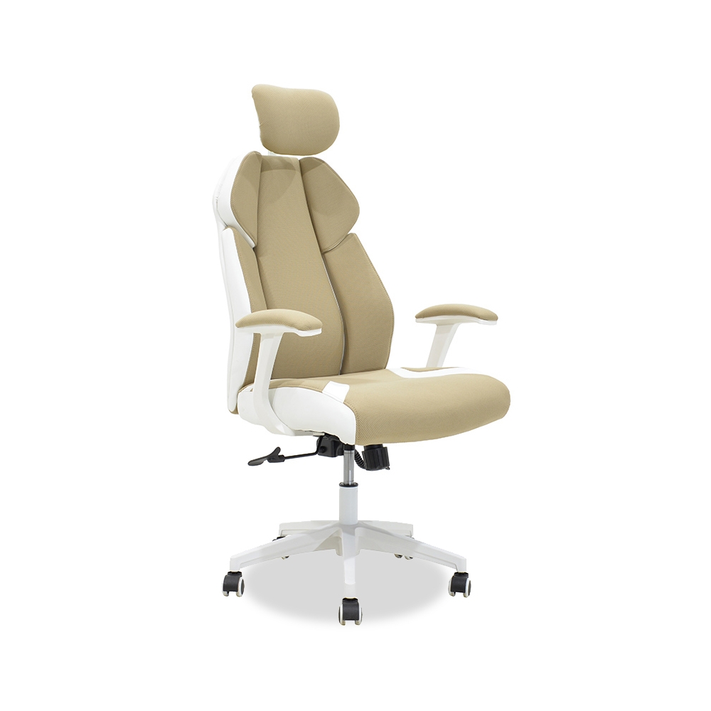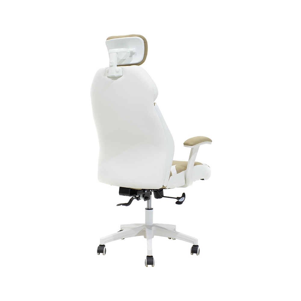 Καρέκλα γραφείου διευθυντή MOMENTUM Bucket πολυτελείας με μπεζ υφάσμα Mesh και πλάτη σε pu λευκό