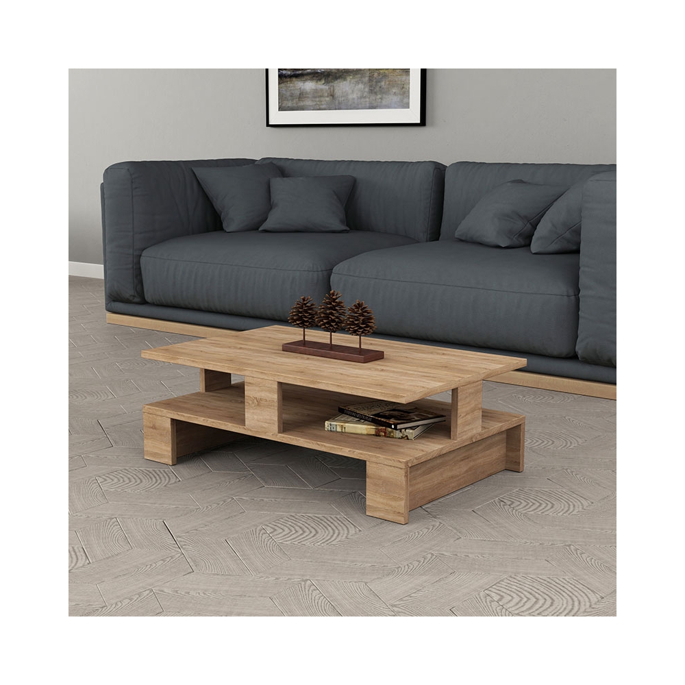 Τραπεζάκι σαλονιού με μοντέρνο design και χρώμα, σε δύο επίπεδα που προσφέρουν την δυνατότητα αποθήκευσης περιοδικών και μικροαντικειμένων.