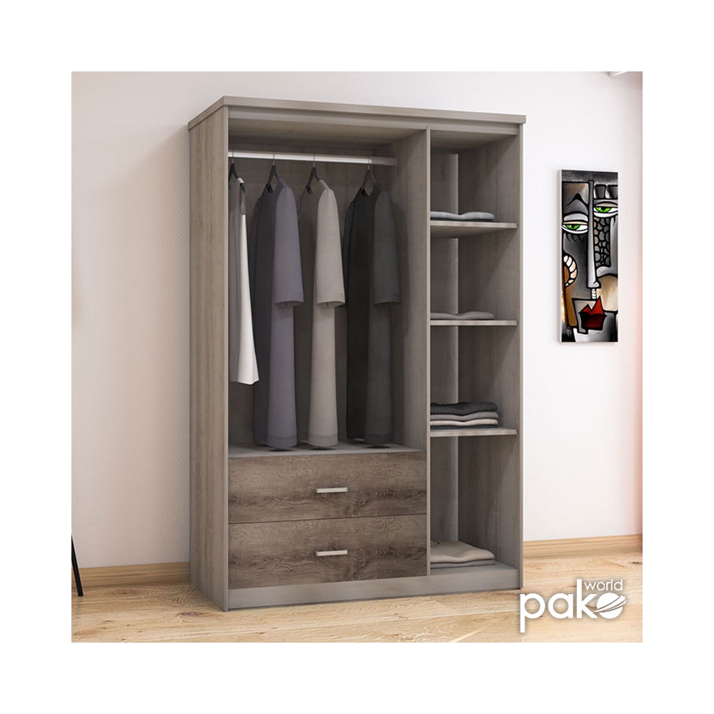 - Περιλαμβάνει δύο μεγάλες πόρτες με εσωτερική ράγα για κρεμάστρες και μία στενή πόρτα με 3 ράφια εσωτερικά. Στο κάτω μέρος φέρει δύο μεγάλα συρτάρια για την αποθήκευση ρούχων και αξεσουάρ.