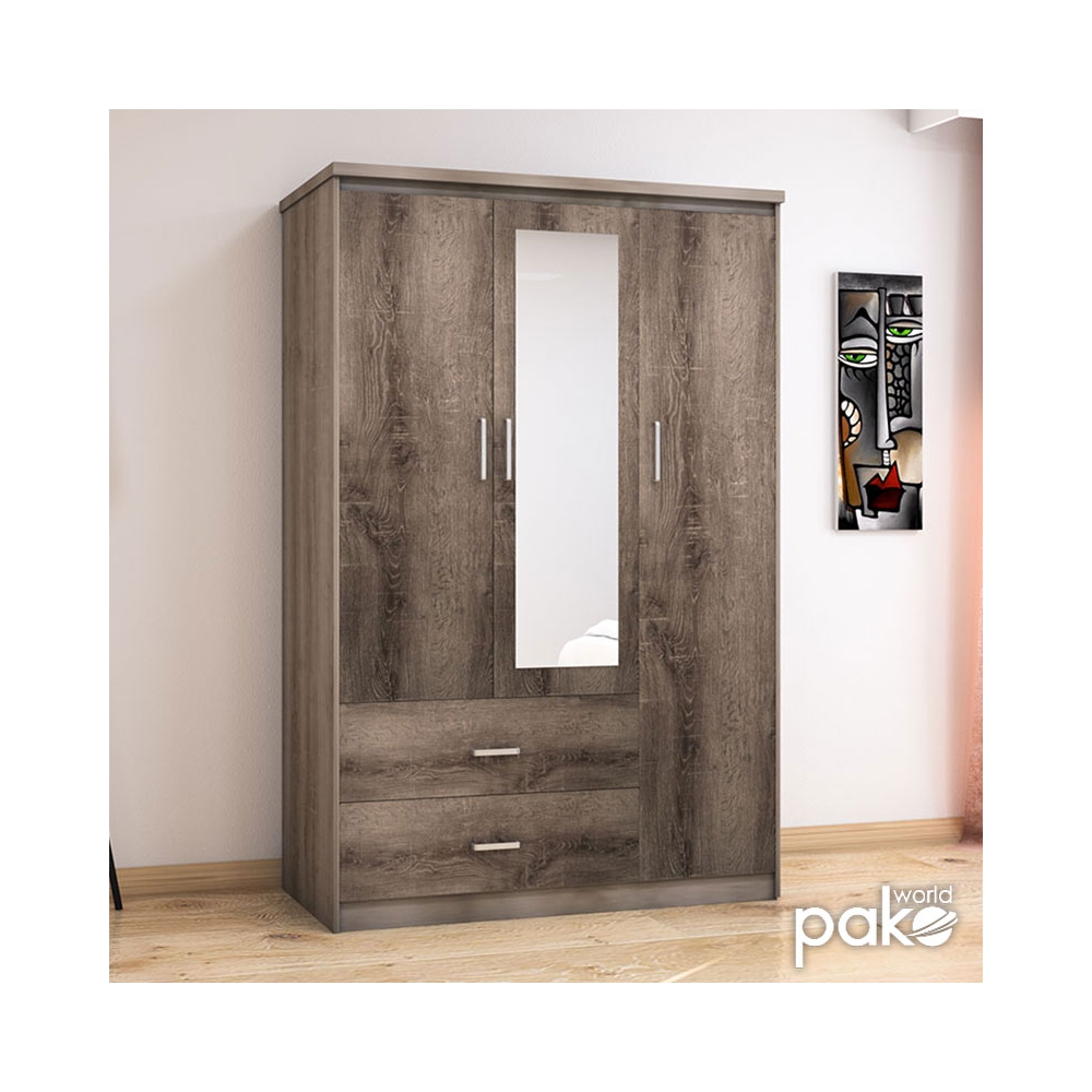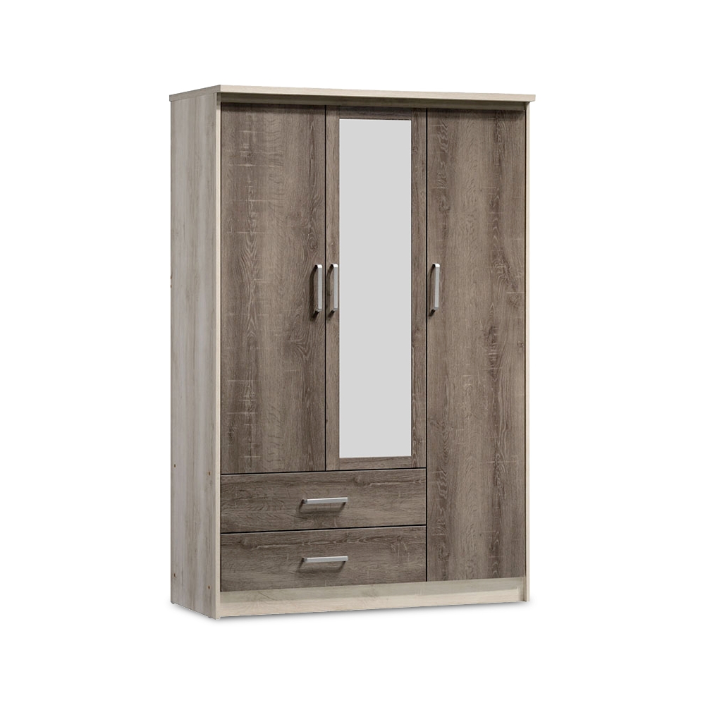 Τρίφυλλη ντουλάπα Olympus με καθρέφτη και δύο συρτάρια σε χρώμα castillo - toro