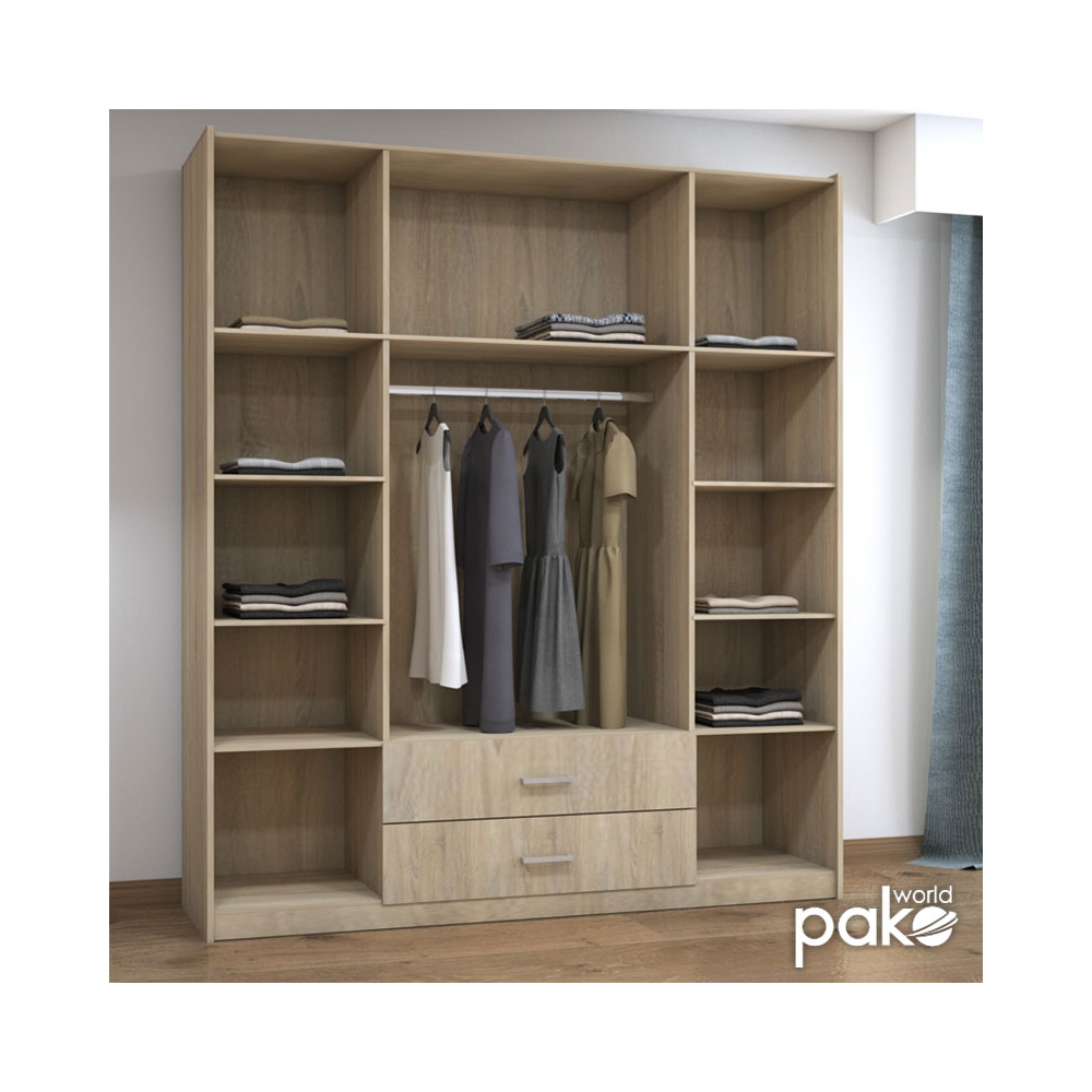 - Μία κεντρική διπλή ντουλάπα, εσωτερικά έχει μία μεγάλη μεταλλική βέργα για κρεμάστρες. Στο κάτω μέρος φέρει δύο πρακτικά συρόμενα συρτάρια για την αποθήκευση ρούχων και αξεσουάρ.
