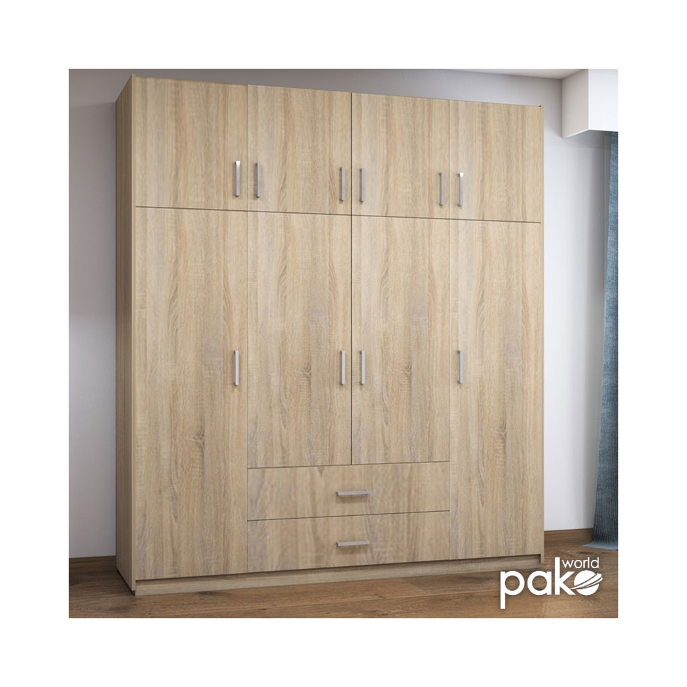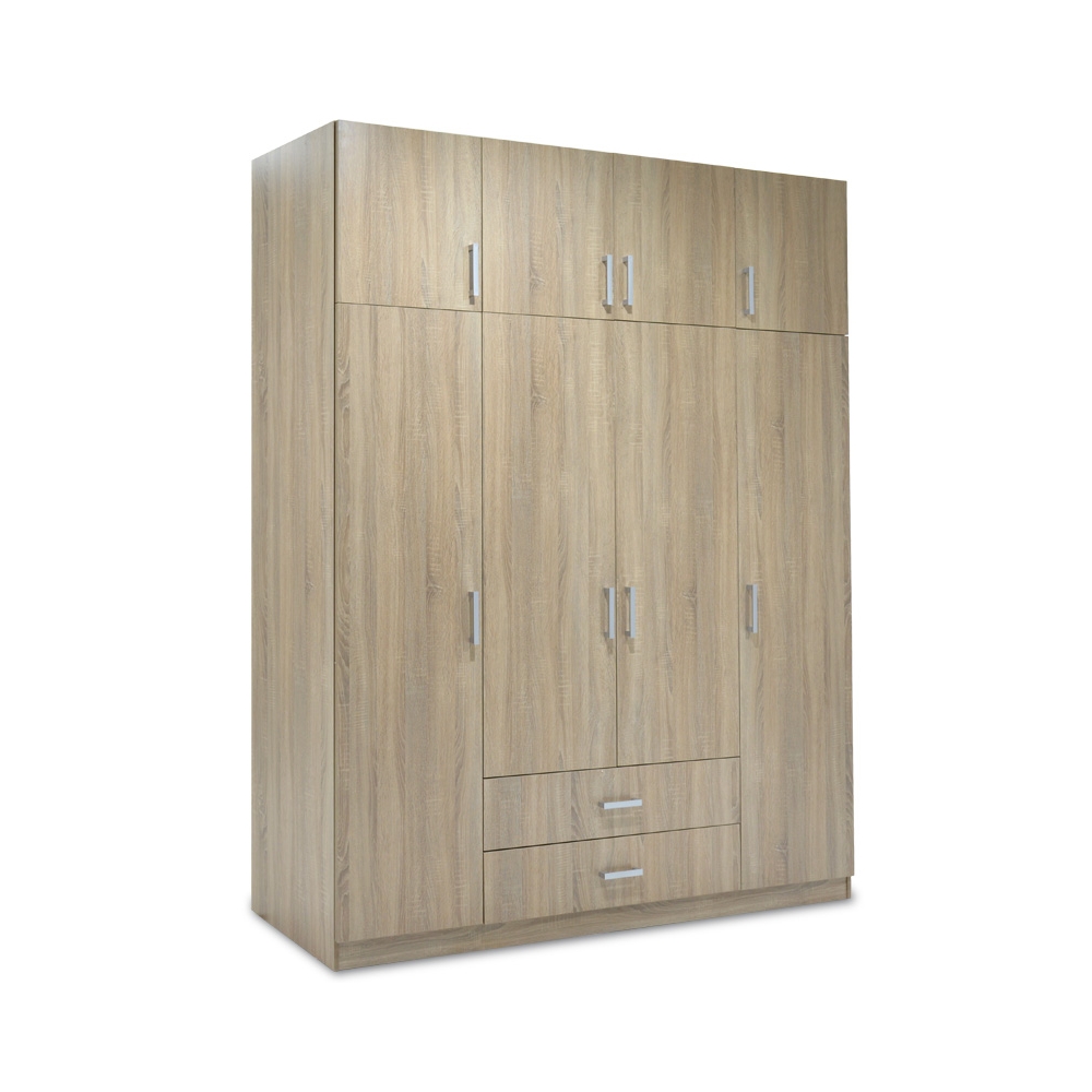 Ντουλάπα Royal τετράφυλλη με πατάρι σε χρώμα sonoma (δρυς) διάστασης 200x58x230