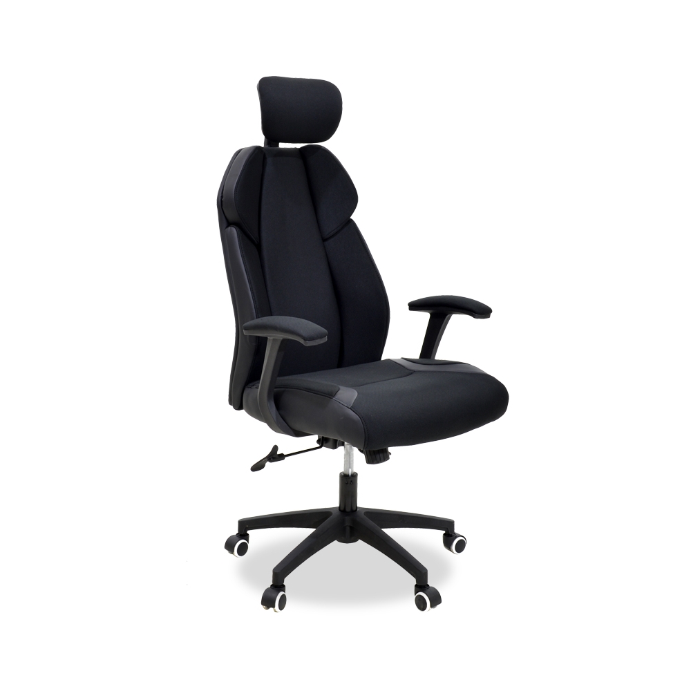 Καρέκλα γραφείου διευθυντή MOMENTUM Bucket πολυτελείας με μαύρο υφάσμα Mesh και πλάτη σε pu μαύρο