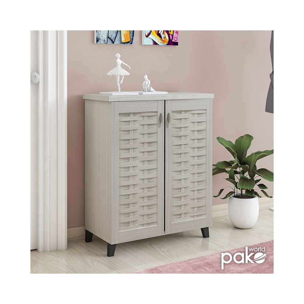 - Περιλαμβάνει δύο πόρτες σε σχέδιο-μοτίβο πλέγματος, εσωτερικά φέρει τρία ράφια για 12 ζεύγη παπουτσιών, ρούχα ή αξεσουάρ.