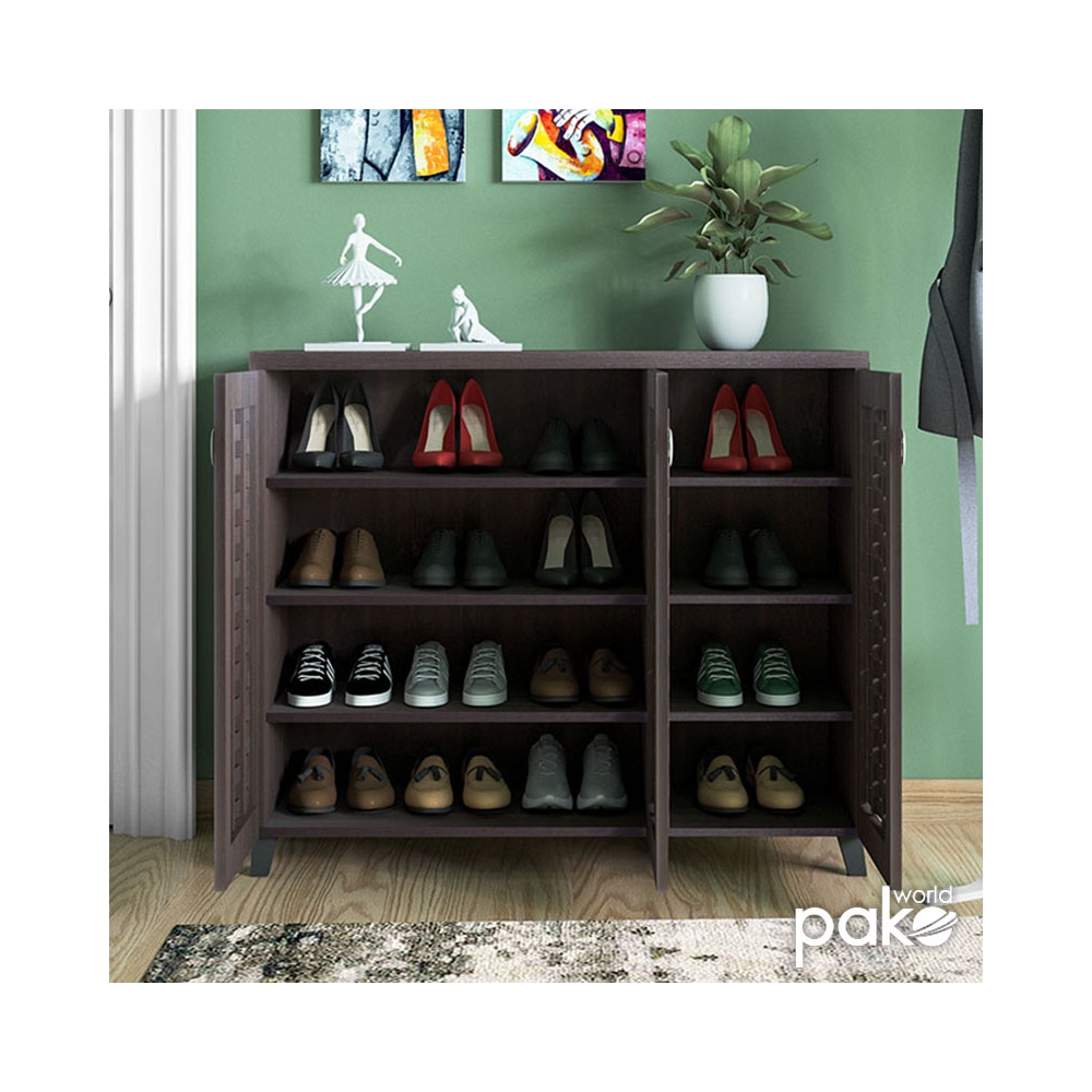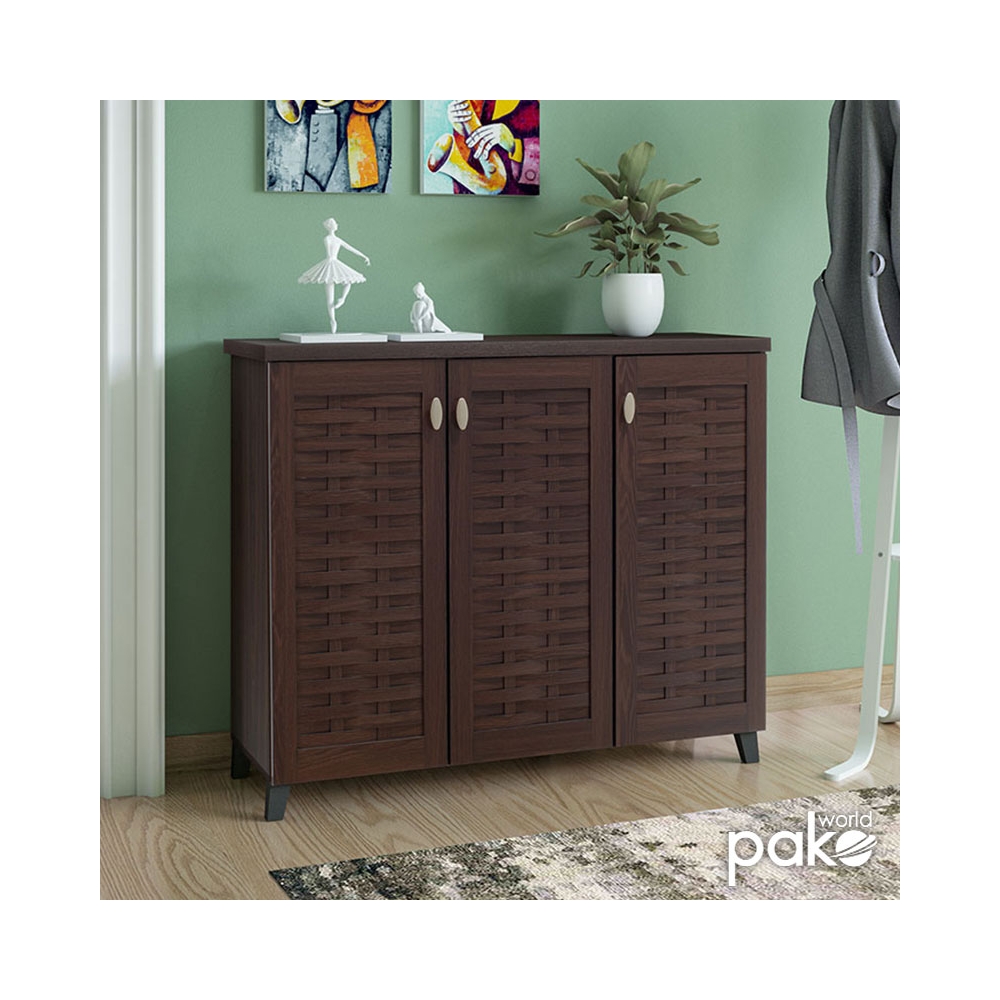 - Περιλαμβάνει τρεις πόρτες σε σχέδιο-μοτίβο πλέγματος, εσωτερικά φέρει έξι ράφια για 16 ζεύγη παπουτσιών, ρούχα ή αξεσουάρ.