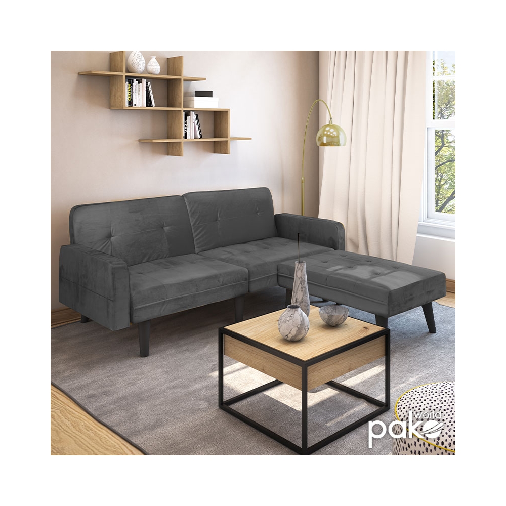 Ένας καναπές σχεδιασμένος με μοντέρνο design που αποπνέει πολυτέλεια, φέρει εύχρηστο μεταλλικό μηχανισμό ώστε να μετατρέπεται με μία απλή κίνηση σε κρεβάτι. Και εξτρά μεγάλο σκαμπό που αποτελεί προέκταση του καναπέ για να χαλαρώσετε ή να ξαπλώσετε.