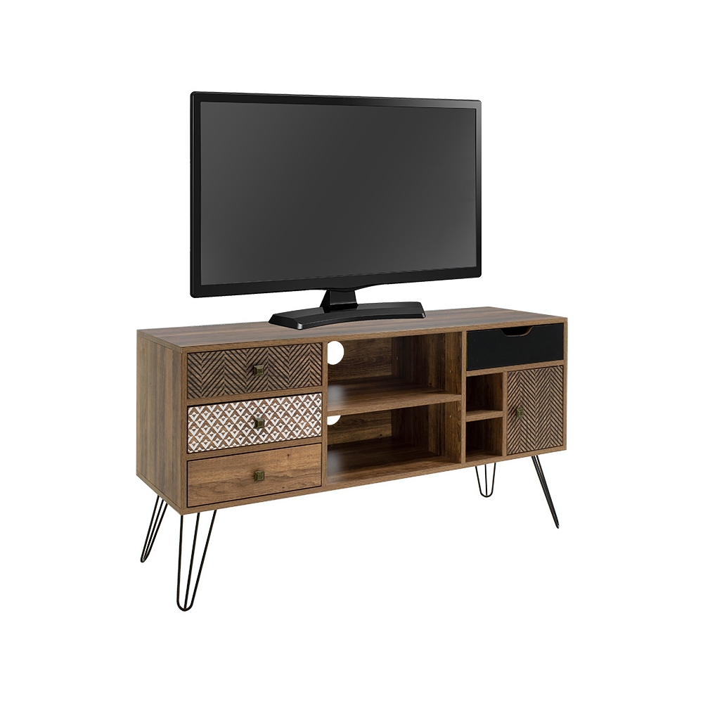 Έπιπλο τηλεόρασης Boho καρυδί με μεταλλικά μαύρα πόδια 120x39x64εκΗ κομψότητα, η ποιότητα και το εντυπωσιακό design είναι το στυλ σου; Και έχεις βαρεθεί τα ίδια και τα ίδια; Αν ναι, τότε το έπιπλο τηλεόρασης Boho είναι για εσένα. Με μοντέρνο σχεδιασμό, ανθεκτικά υλικά και πολλαπλά συρτάρια, ράφια και ντουλαπάκι για την αποθήκευση των αγαπημένων σου αξεσουάρ. Μία ιδανική πρόταση διακόσμησης για την αισθητική ανανέωση του χώρου σου. Τεχνικά χαρακτηριστικά: