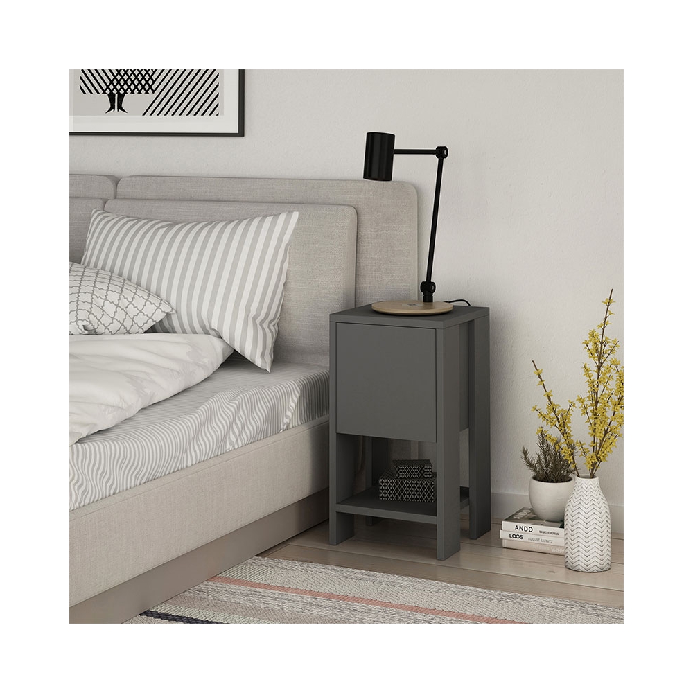 Κομοδίνο Ema με ένα ντουλάπι χρώμα ανθρακί 30x30x55εκΨάχνετε μία minimal επιλογή κομοδίνου για την κρεβατοκάμαρά σας, η οποία παράλληλα να αυξάνει τη χρησιμότητα ενός βοηθητικού επίπλου για τις νυχτερινές σας ανάγκες;Με μεγάλο χώρο αποθήκευσης και υψηλής ποιότητας κατασκευή;Η σειρά Ema θα καλύψει τις ανάγκες σας, καθώς διαθέτει ντουλάπι ύψους 27εκ. και αντίστοιχου πλάτους, ενώ κάτω από το ντουλάπι υπάρχει χαμηλό ράφι για επιπλέον χώρο αποθήκευσης. Επιλέξτε την και ανανεώστε τον χώρο σας σύμφωνα με τις τελευταίες τάσεις της εποχής. Συνδυάζεται αρμονικά με τα υπόλοιπα έπιπλα της κρεβατοκάμαρας. Τεχνικά χαρακτηριστικά: