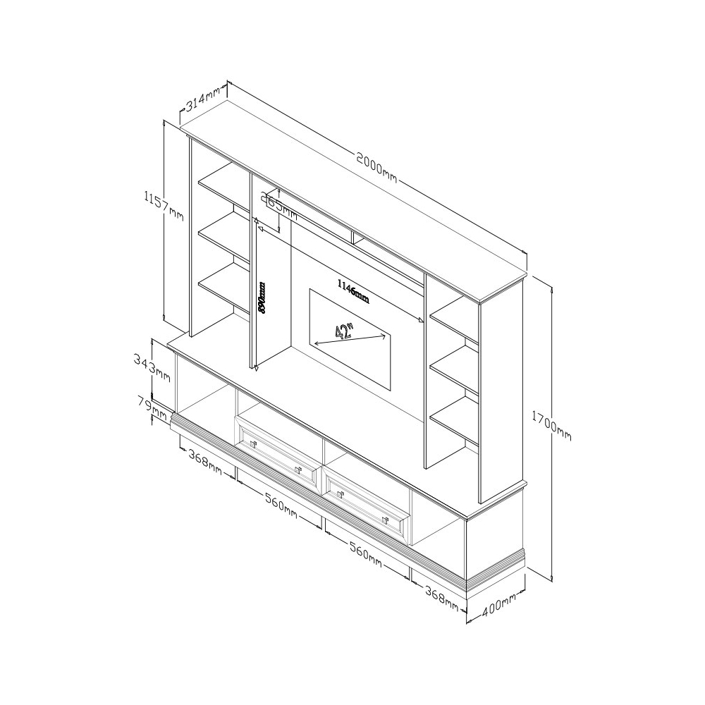 Σύνθετο σαλονιού Mozart χρώμα καρυδί 200x40x170,5εκ