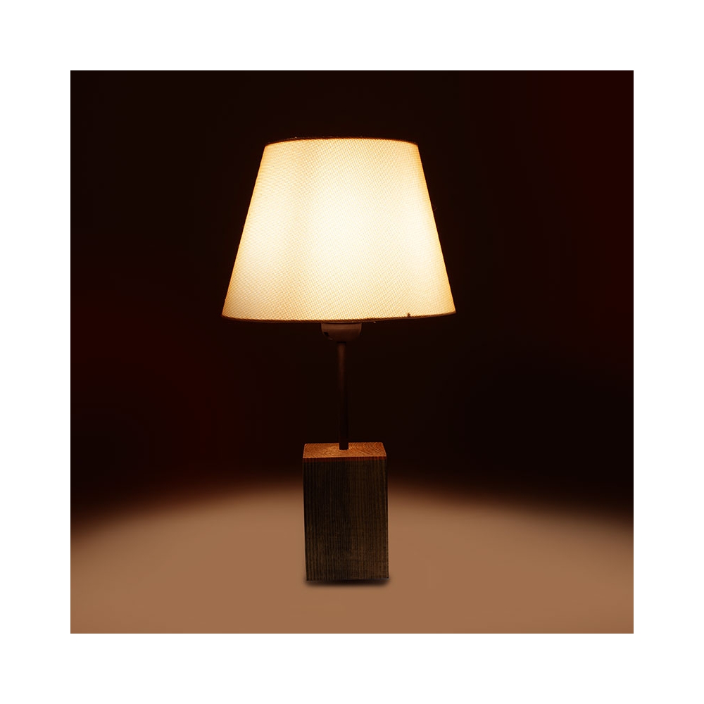Επιτραπέζιο ξύλινο φωτιστικό Hapiness με εκρού υφασμάτινο καπέλο Φ14-22x40εκ
