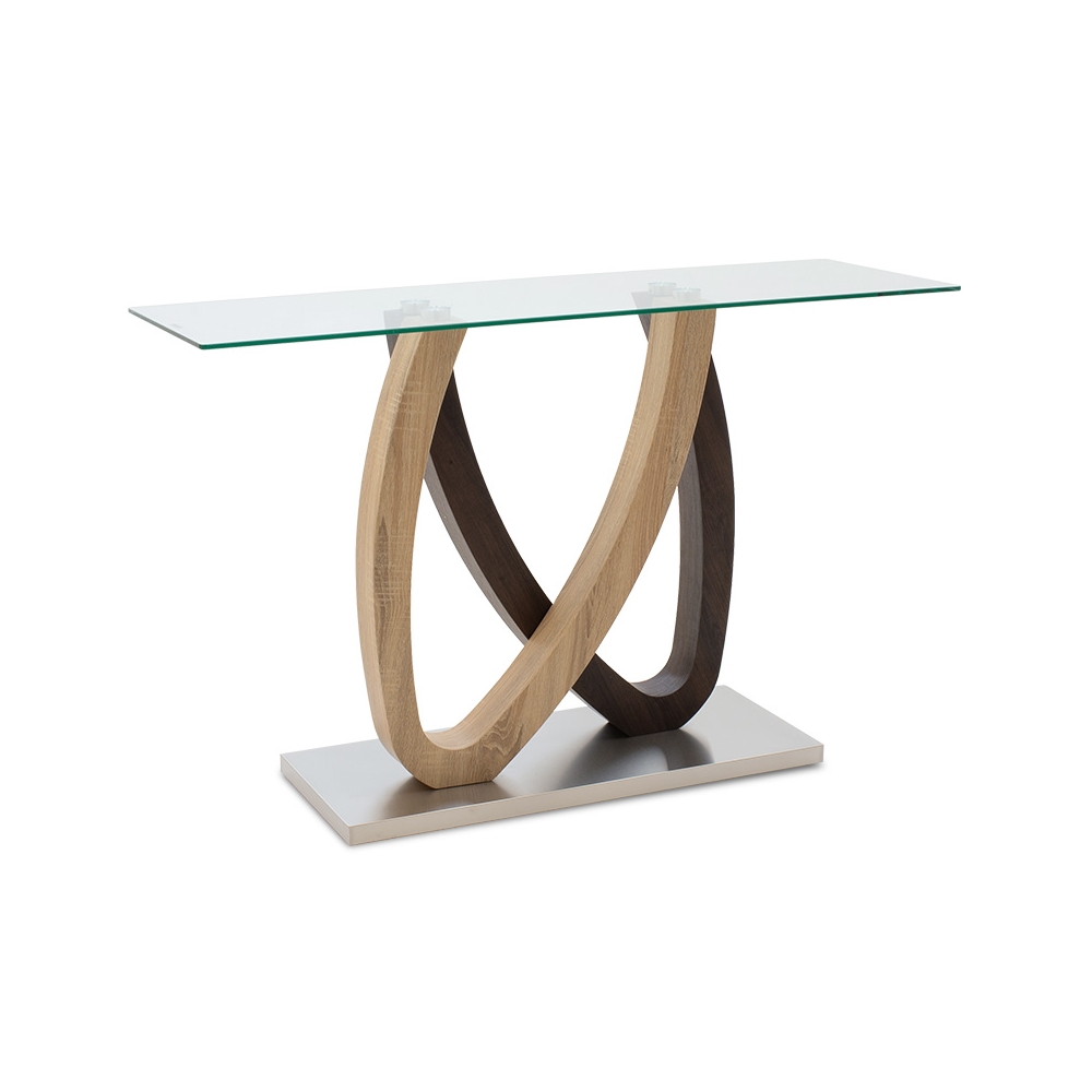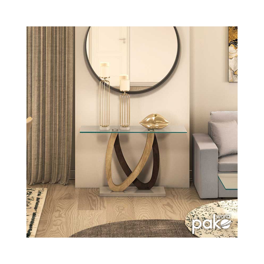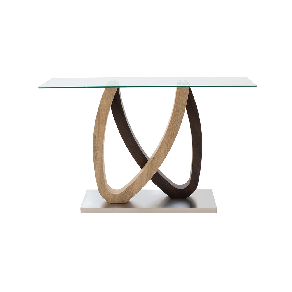 Κονσόλα Masai pakoworld γυαλί 10mm tempered-πόδι χρώμα sonoma-καρυδί 120x40x76εκ