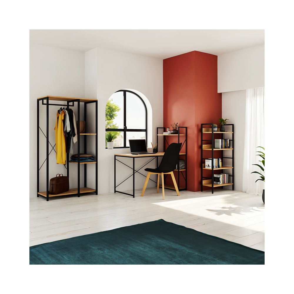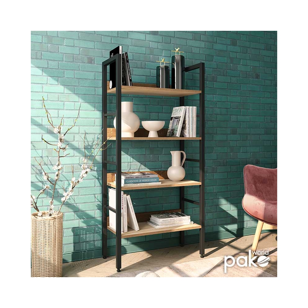 Βιβλιοθήκη Ramon pakoworld φυσικό-μαύρο 60x28x125,5εκ