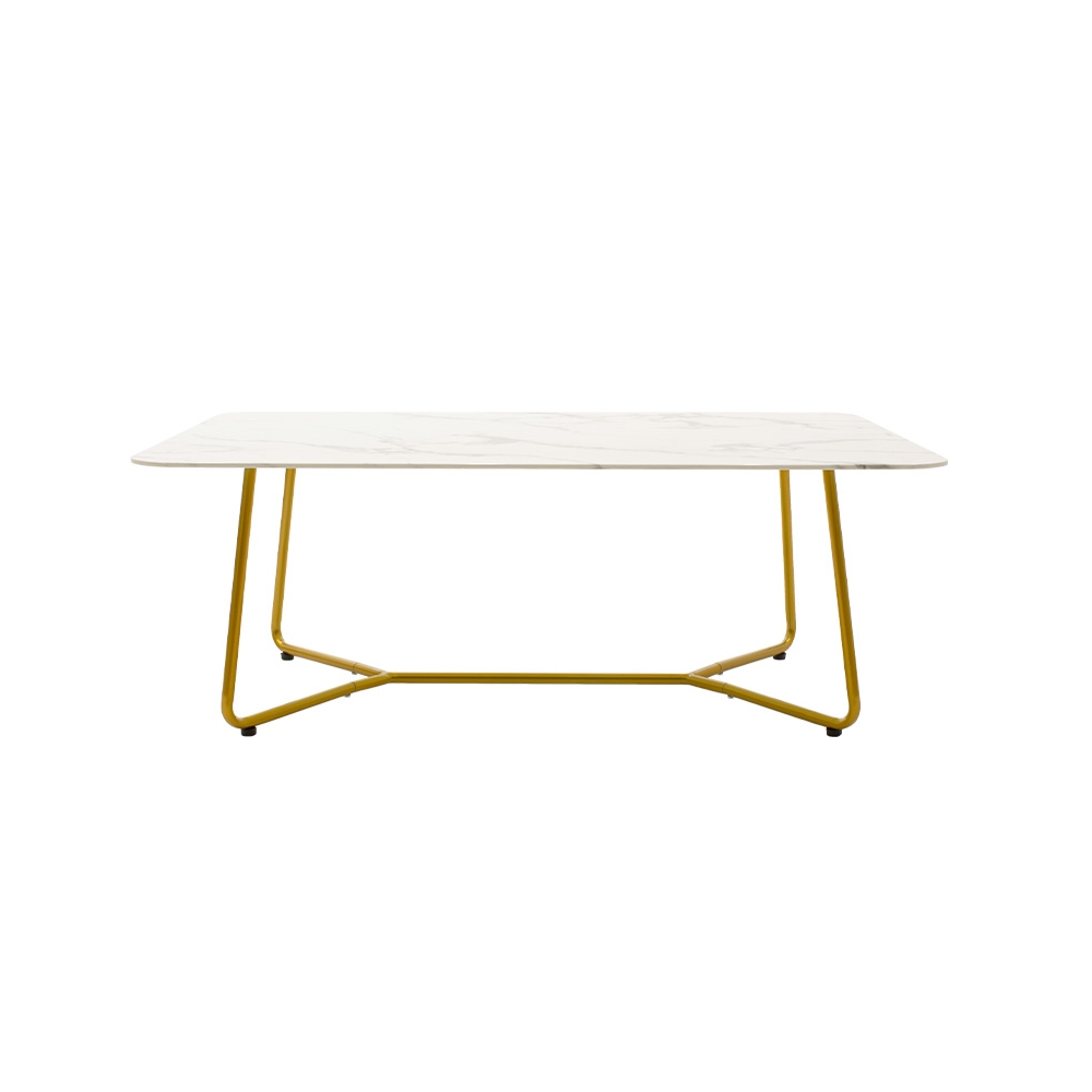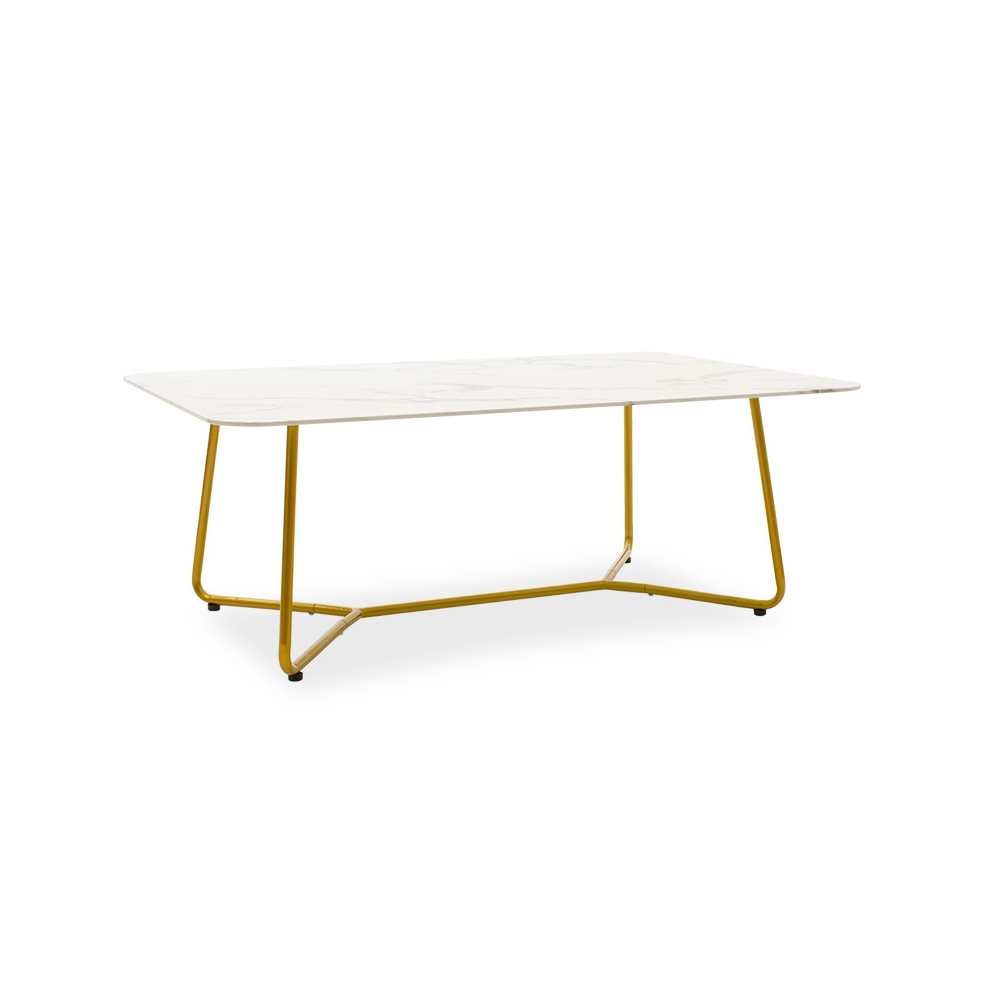 Τραπέζι σαλονιού Paris pakoworld γυαλί 8mm σχέδιο μαρμάρου-χρυσό 120x80x45εκ