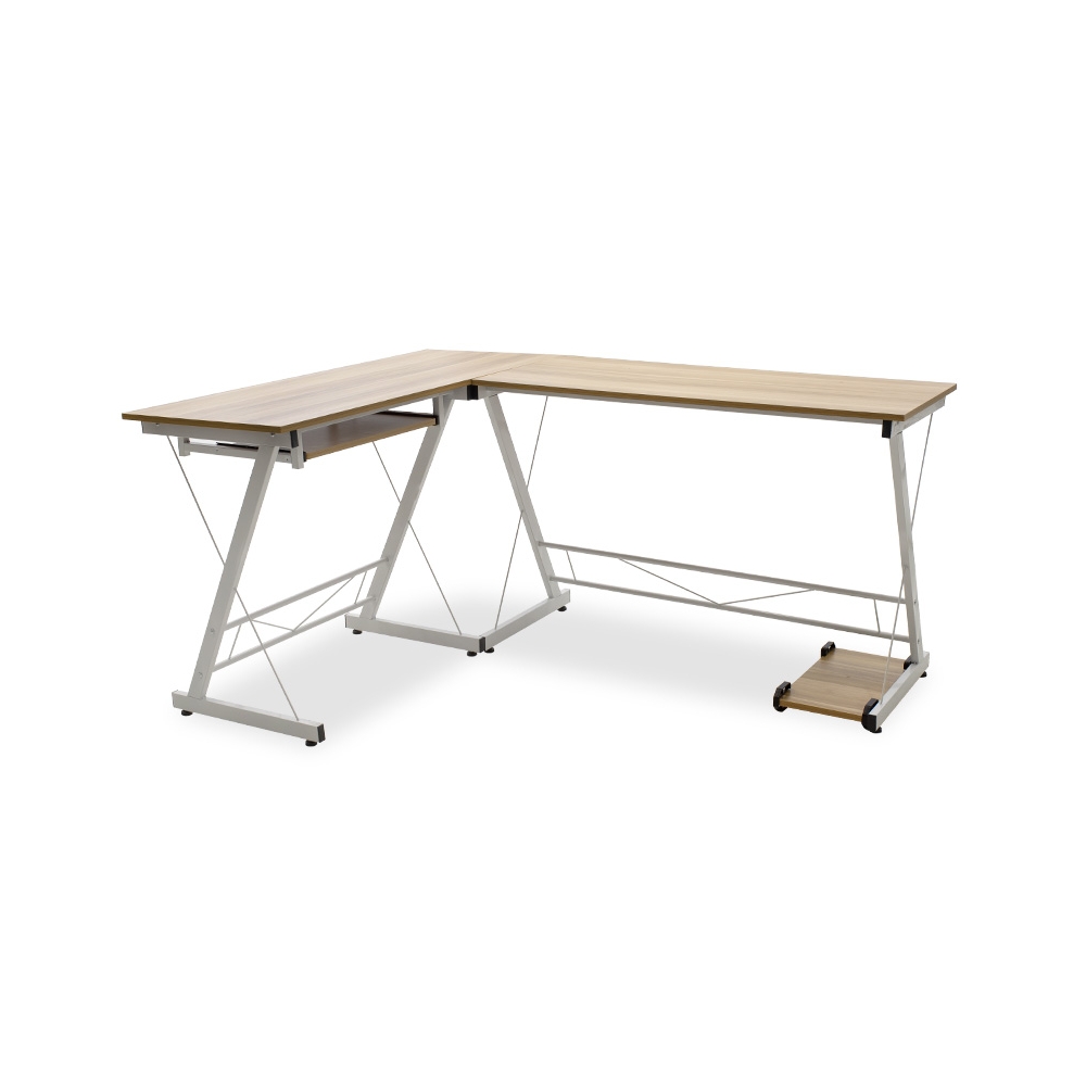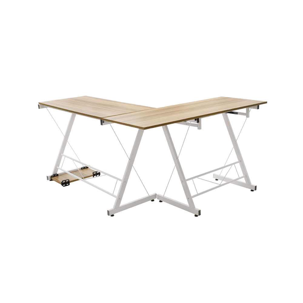 Γραφείο γωνιακό αναστρέψιμο Levi pakoworld-MDF χρώμα oak - λευκό 158x120x73εκ