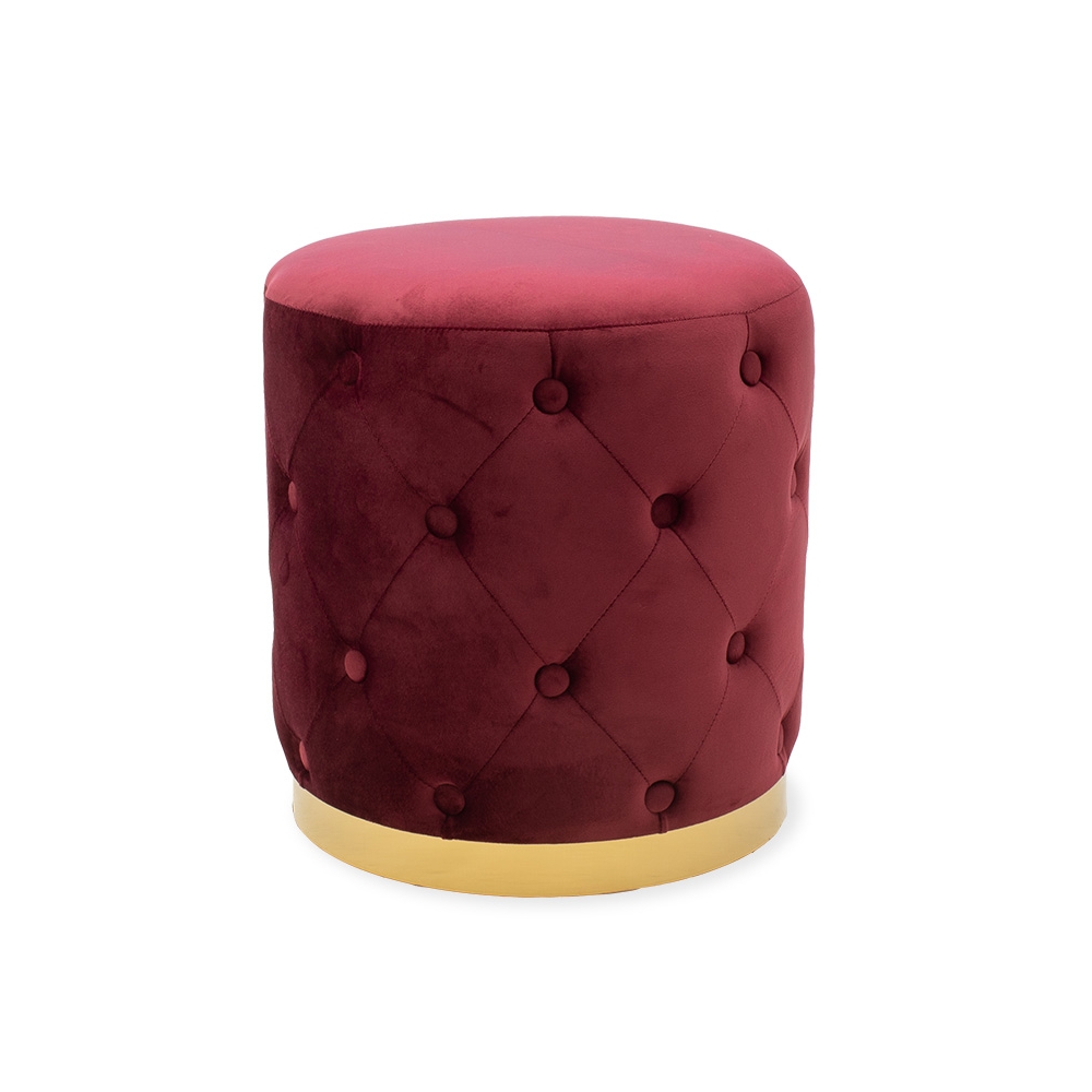 Σκαμπό σαλονιού Cora pakoworld βελούδο μπορντό-χρυσό Φ40x42εκ Pakoworld 110-000006