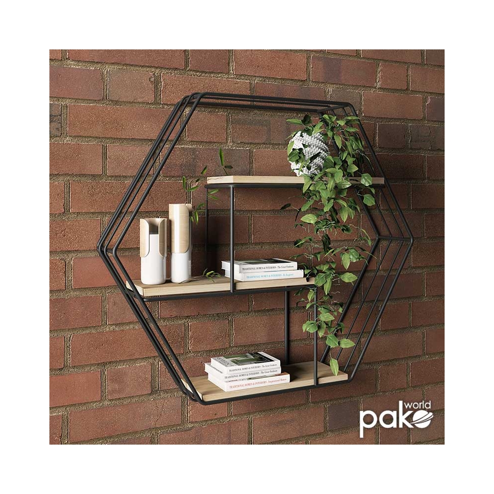 Ραφιέρα τοίχου Azira pakoworld μεταλλική χρώμα μαύρο-φυσικό 50x10x44εκ