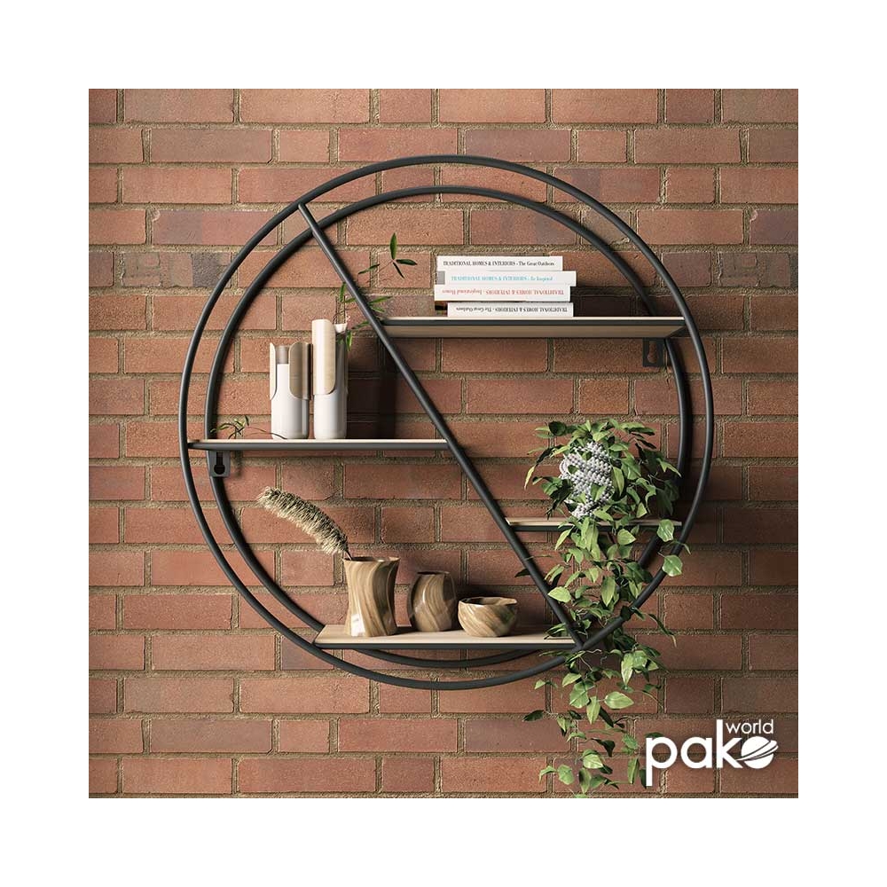 Ραφιέρα τοίχου Azira pakoworld μεταλλική χρώμα μαύρο-φυσικό 60x13x61εκ