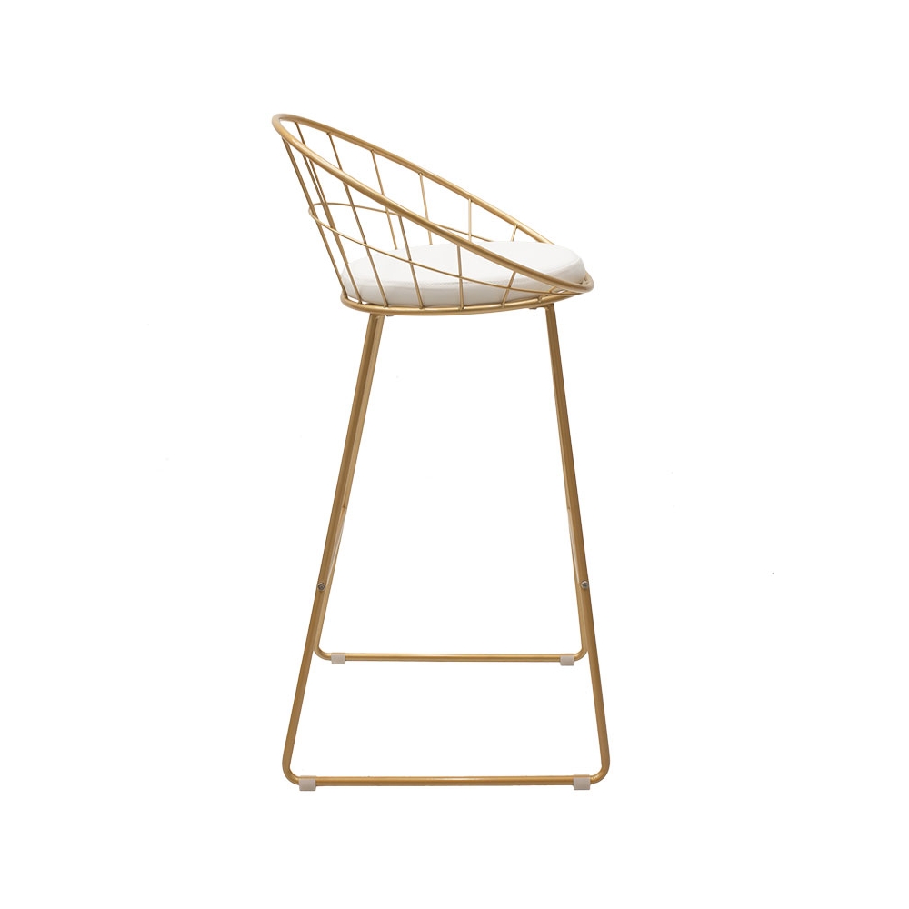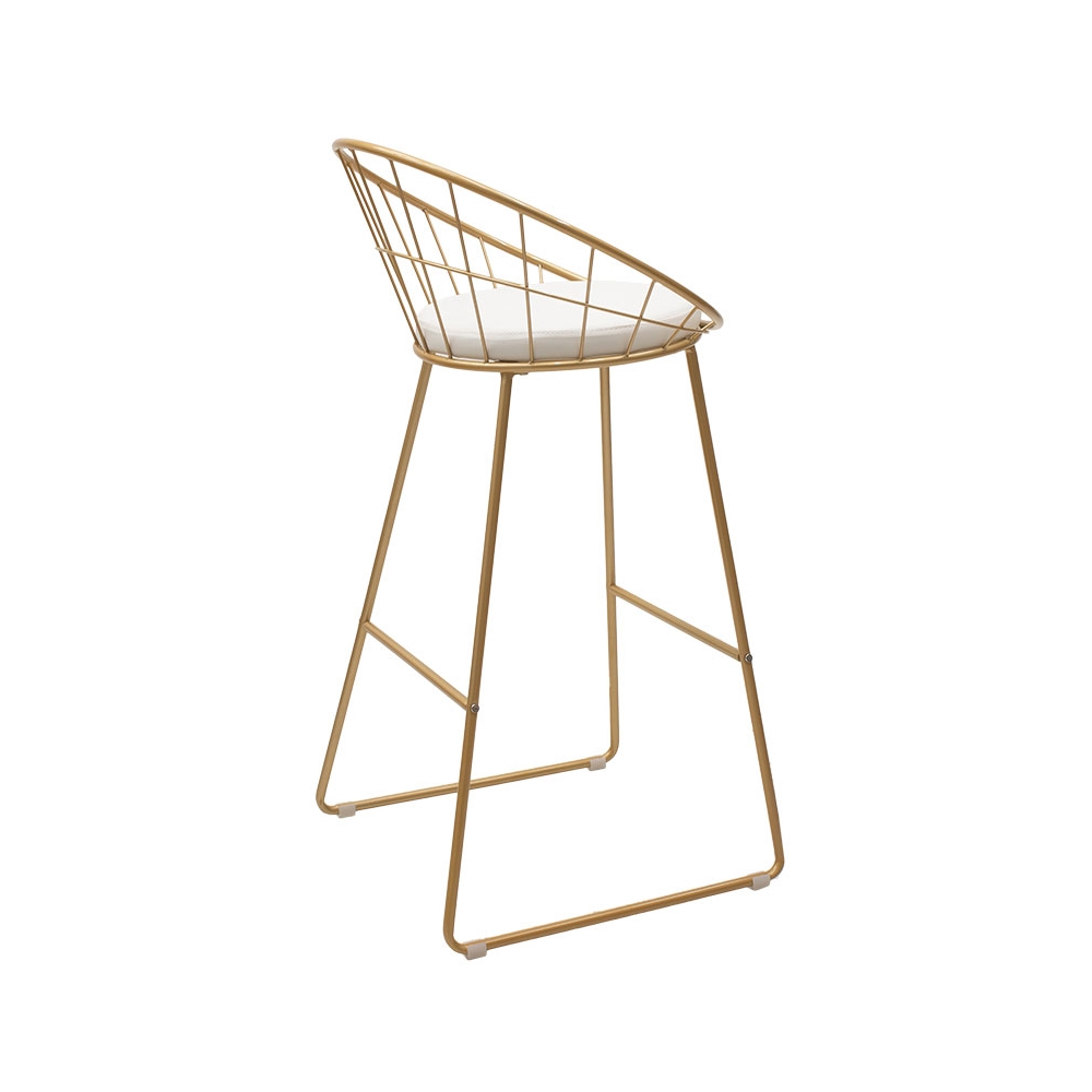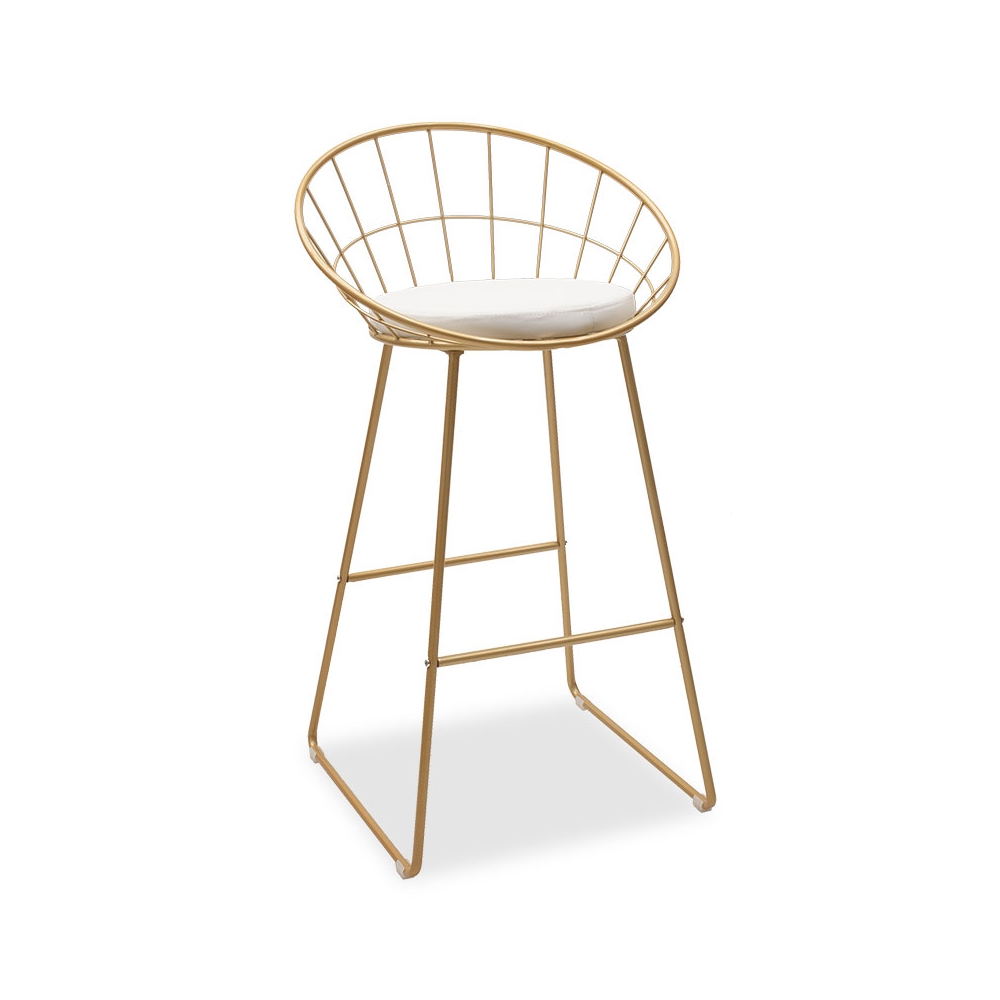 Σκαμπό μπαρ Seth pakoworld μεταλλικό χρυσό με μαξιλάρι PVC λευκό