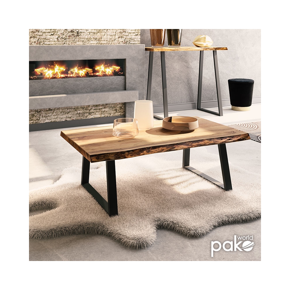 Τραπέζι σαλονιού Miles pakoworld μασίφ ξύλο 4εκ φυσικό-πόδι μαύρο 115x72x41εκ