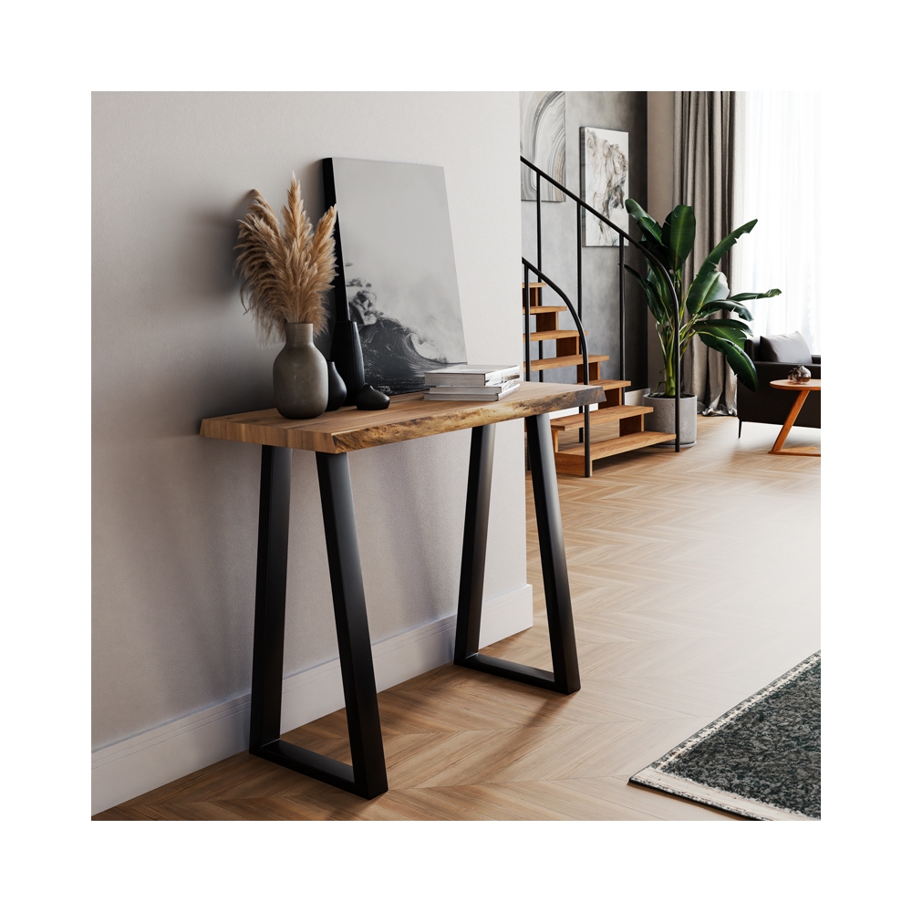 Τραπέζι μπαρ-κονσόλα Miles pakoworld μασίφ ξύλο 4εκ φυσικό-πόδι μαύρο 120x53x97εκ