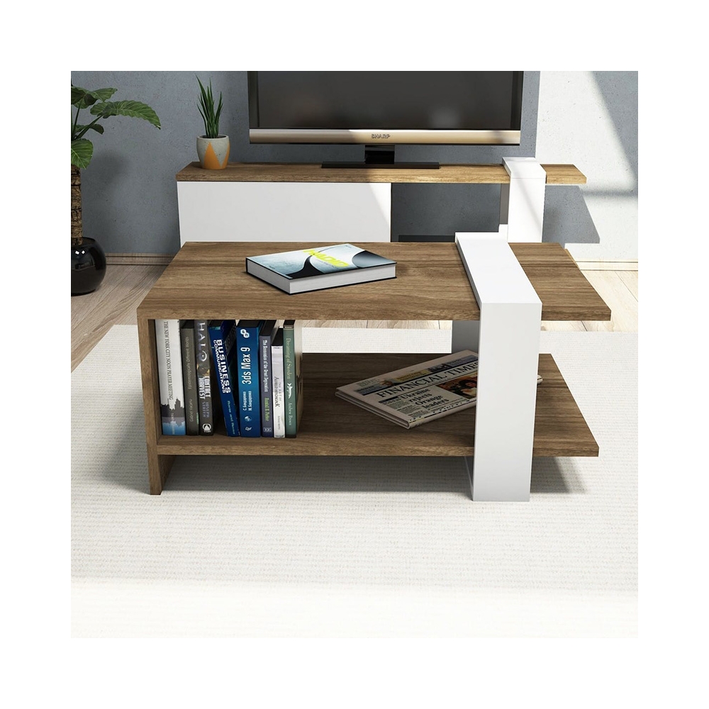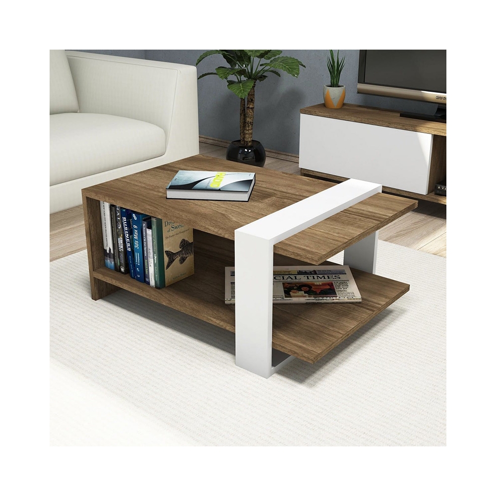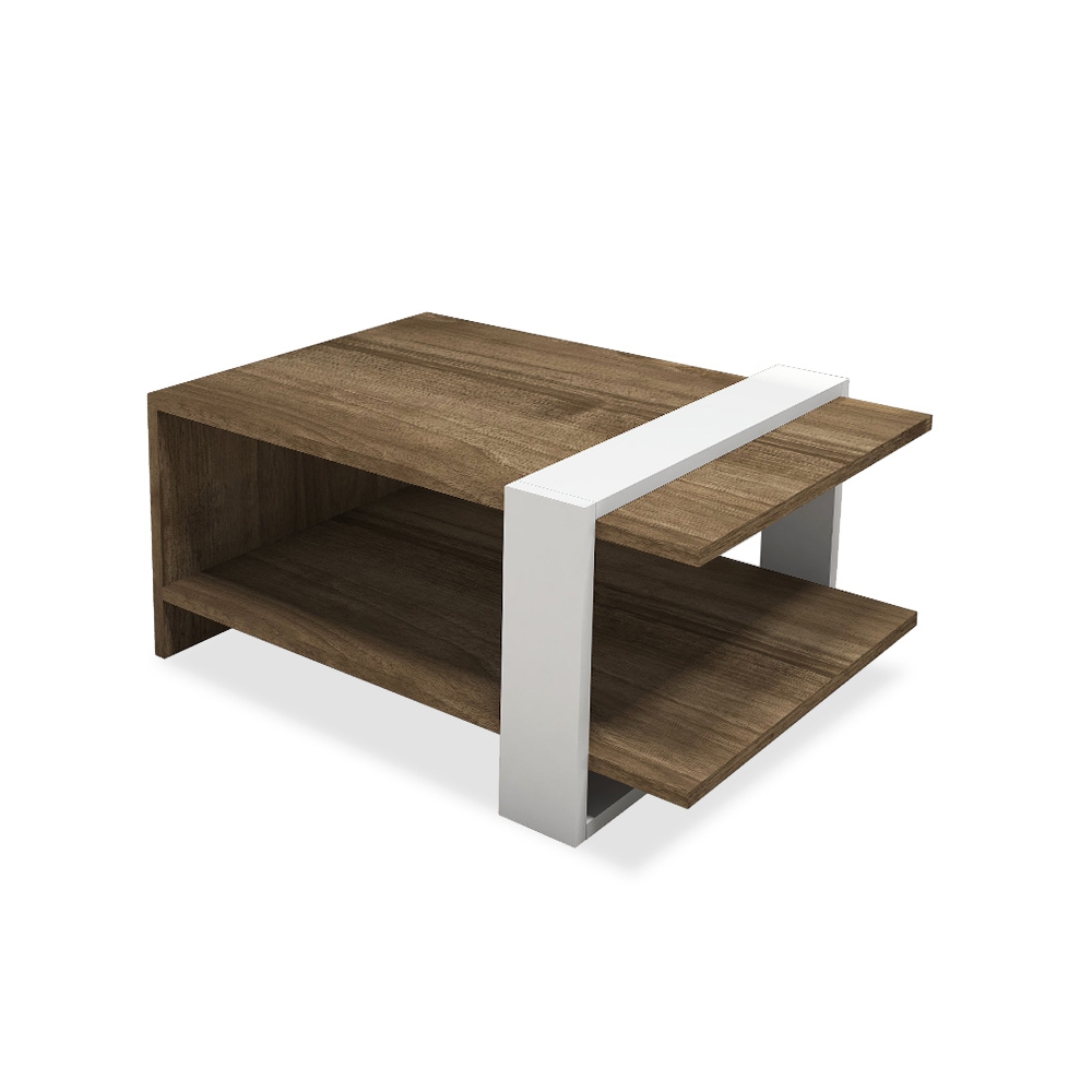 Τραπέζι σαλονιού Cave pakoworld χρώμα καρυδί-λευκό 80x50x35εκ