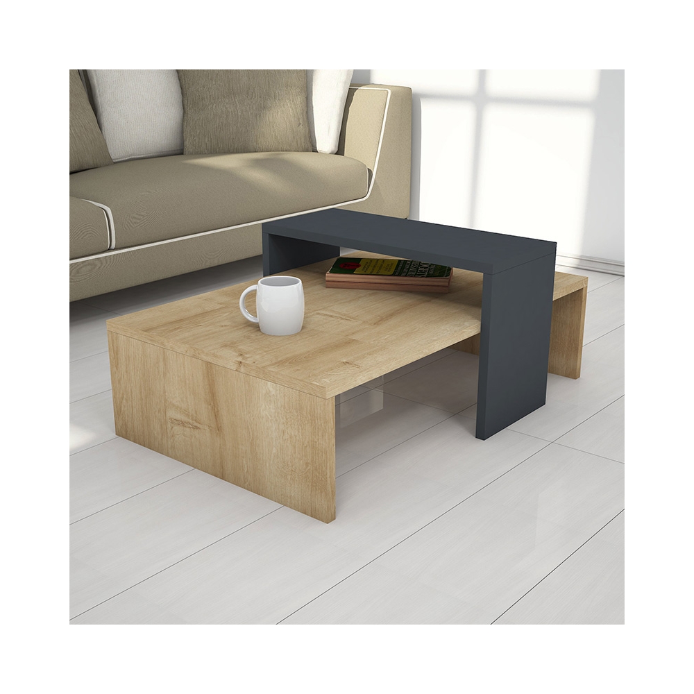Τραπέζι σαλονιού Glow pakoworld χρώμα φυσικό-ανθρακί 80x50x32εκ Pakoworld 120-000040