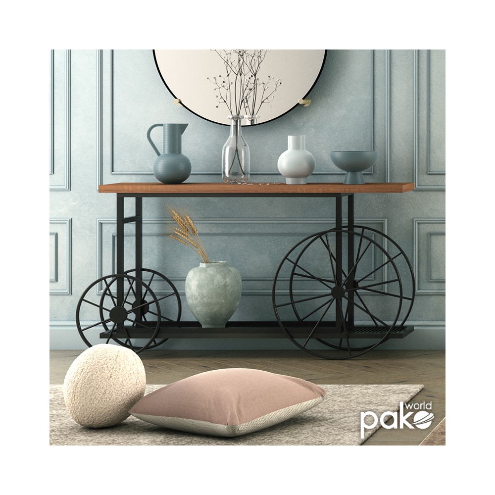 Κονσόλα Bike pakoworld χρώμα μαύρο-καρυδί 148x28x85εκ