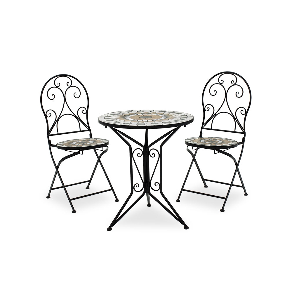 Τραπεζαρία Mosaic pakoworld σετ 3τεμ μέταλλο μαύρο