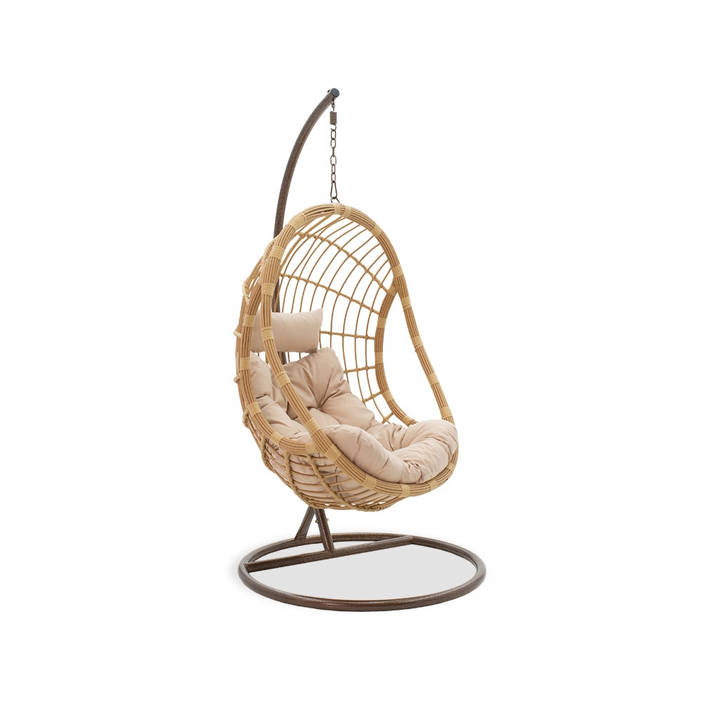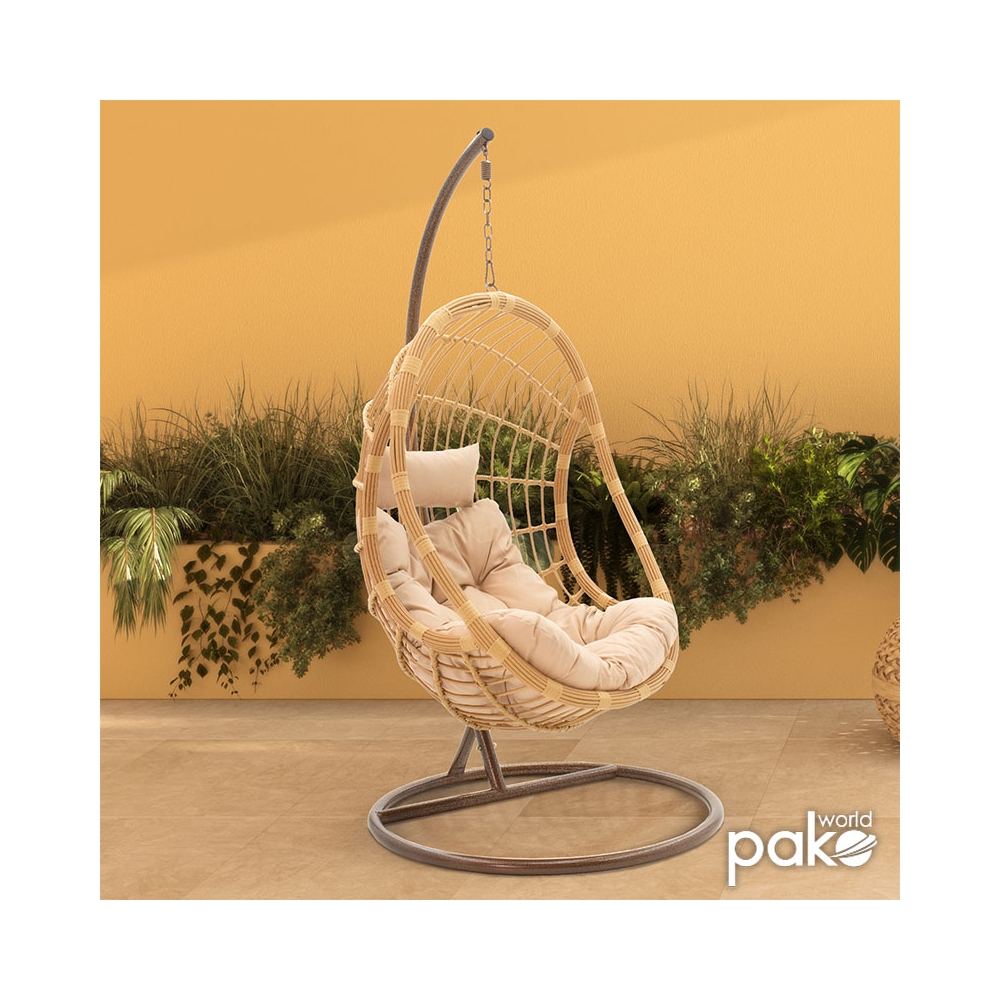 Κούνια Lacie pakoworld κρεμαστή μέταλλο καφέ-pe φυσικό-μαξιλάρι μπεζ