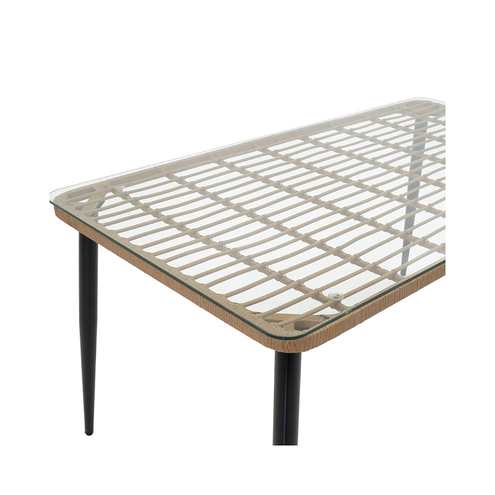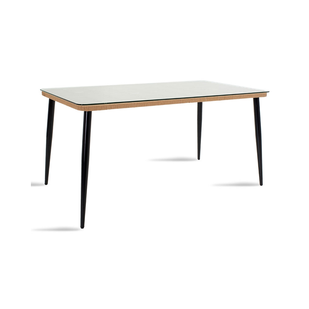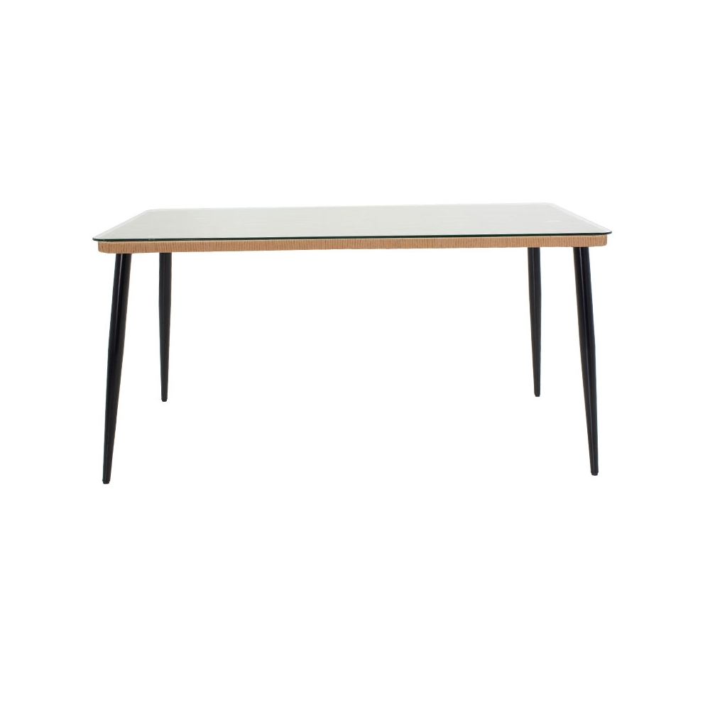 Τραπέζι Naoki pakoworld μέταλλο μαύρο-pe φυσικό-γυαλί 160x90x78εκ