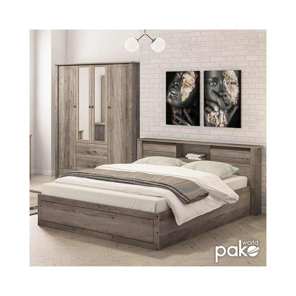Κρεβάτι διπλό Tara pakoworld rustic oak 160x200εκ