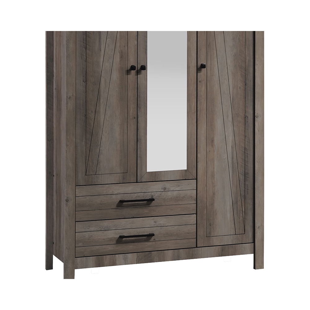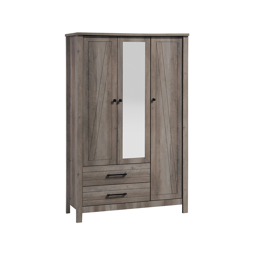Ντουλάπα ρούχων Tara pakoworld τρίφυλλη καθρέπτης rustic oak 121x52x193εκ