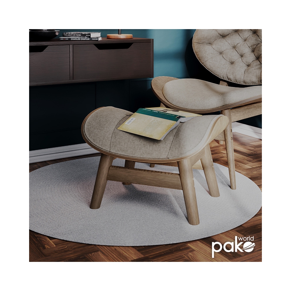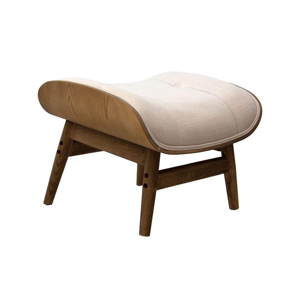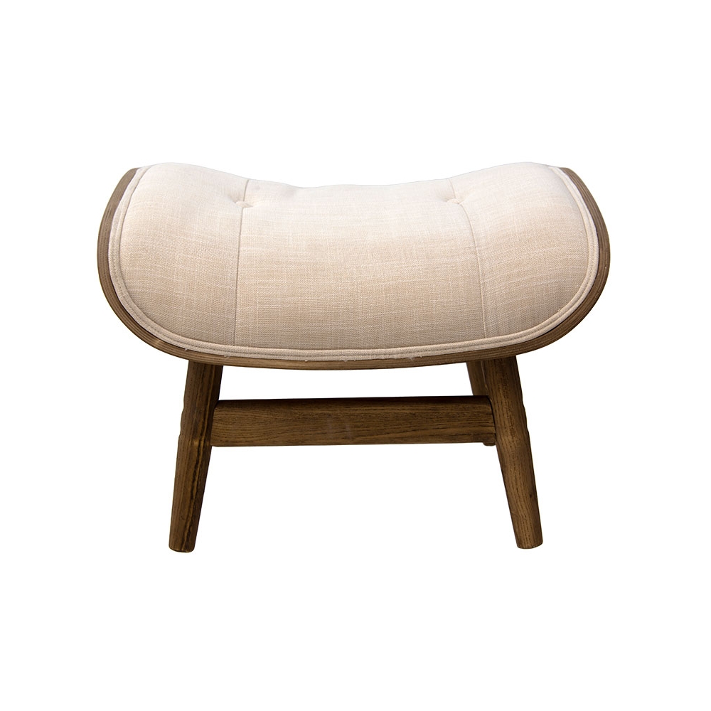 Σκαμπό relax Mirto pakoworld μασίφ ξύλο καρυδί-ύφασμα εκρού 63x50x46εκ