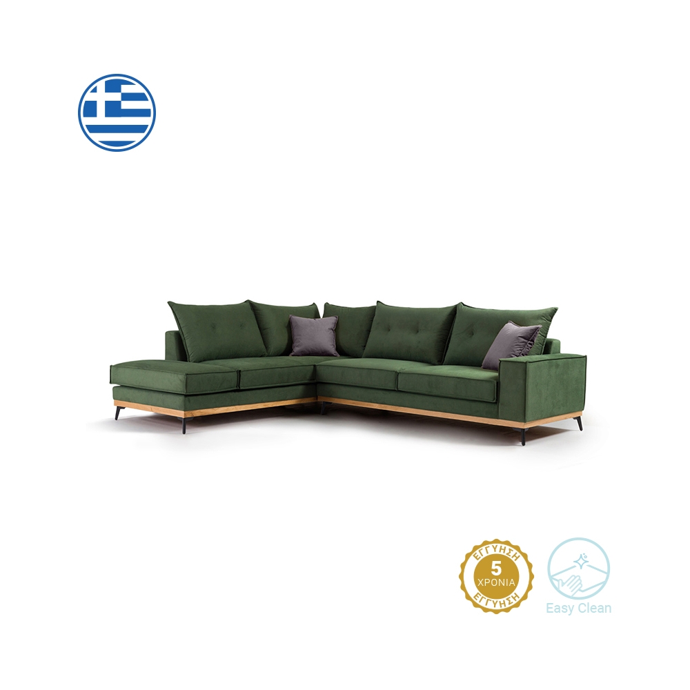 Γωνιακός καναπές δεξιά γωνία Luxury II pakoworld ύφασμα κυπαρισσί-ανθρακί 290x235x95εκ