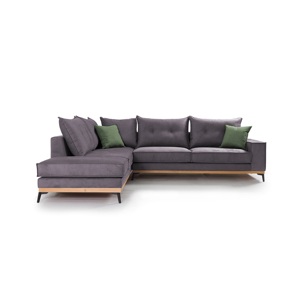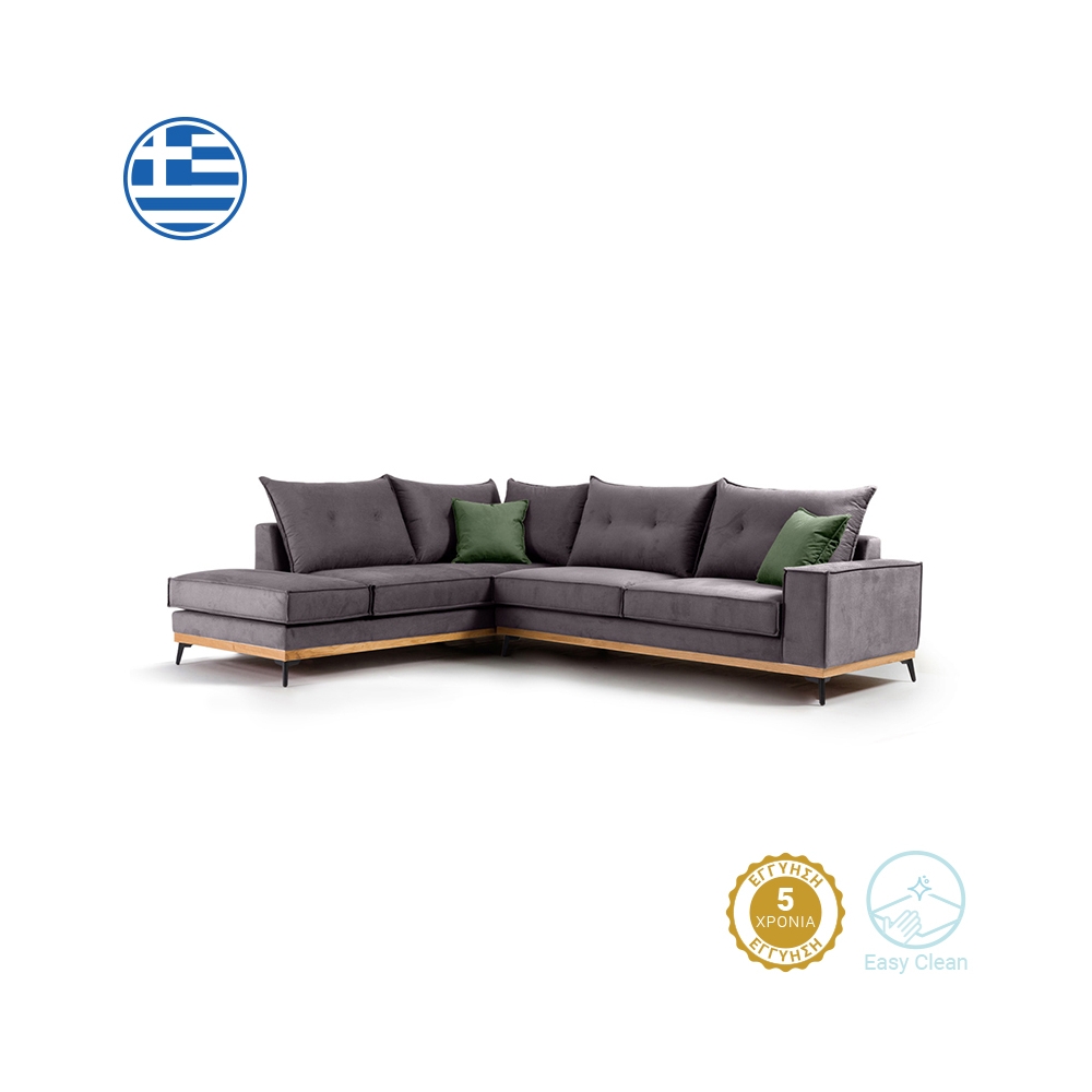 Γωνιακός καναπές δεξιά γωνία Luxury II pakoworld ύφασμα ανθρακί-κυπαρισσί 290x235x95εκ