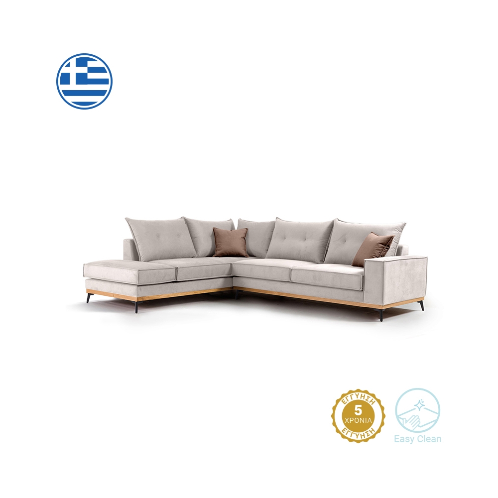 Γωνιακός καναπές δεξιά γωνία Luxury II pakoworld ύφασμα cream-mocha 290x235x95εκ