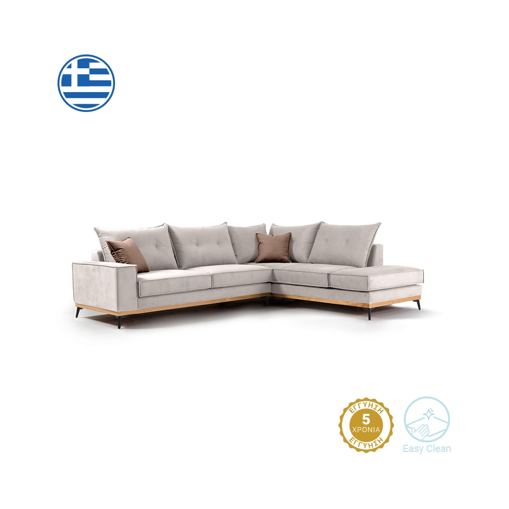Γωνιακός καναπές αριστερή γωνία Luxury II pakoworld ύφασμα cream-mocha 290x235x95εκ