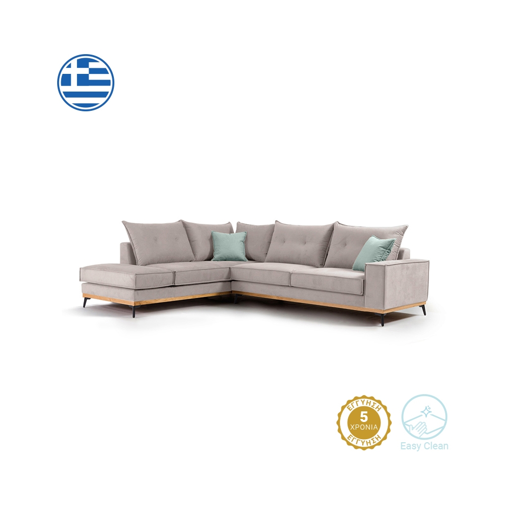 Γωνιακός καναπές δεξιά γωνία Luxury II pakoworld ύφασμα elephant-ciel 290x235x95εκ