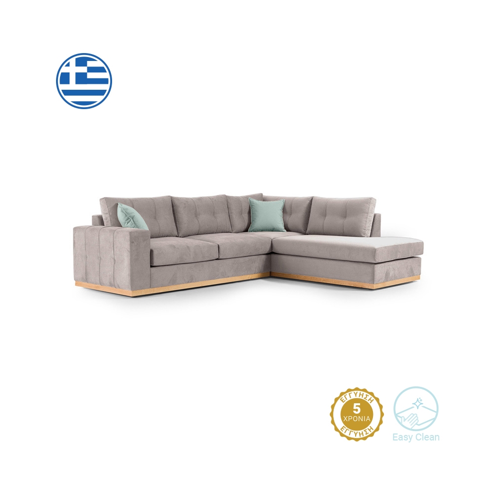 Γωνιακός καναπές αριστερή γωνία Boston pakoworld ύφασμα elephant-ciel 280x225x90εκ