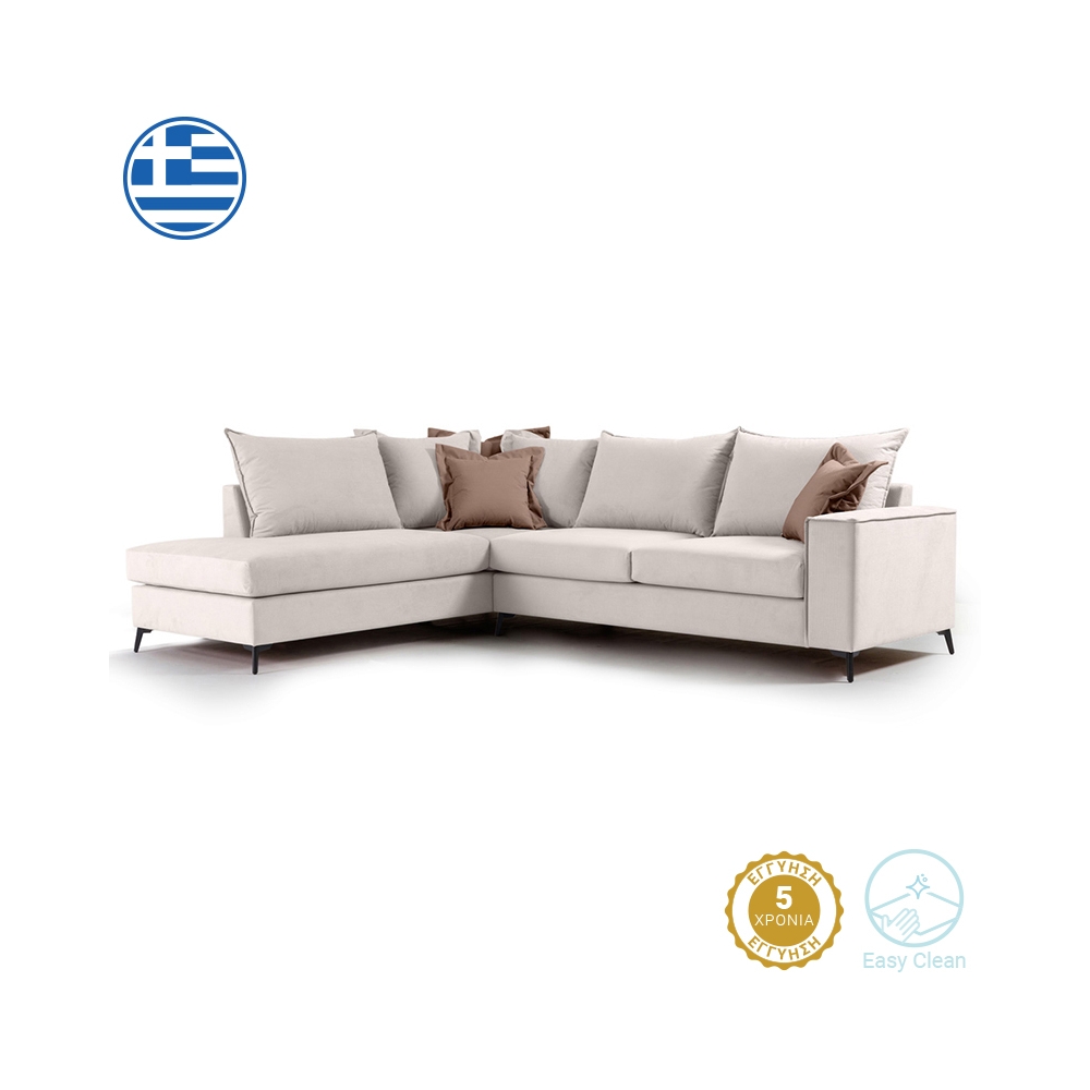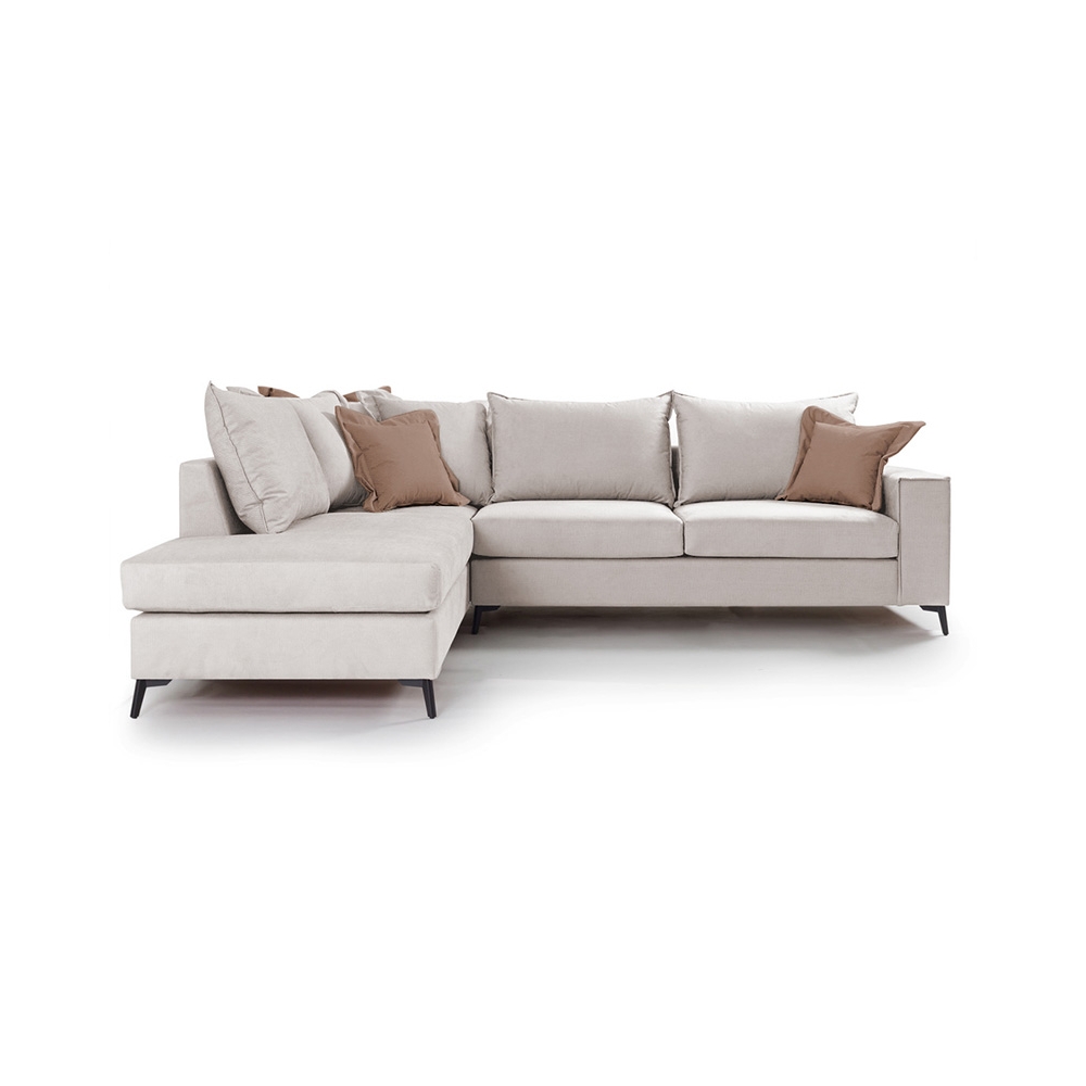 Γωνιακός καναπές δεξιά γωνία Romantic pakoworld ύφασμα cream-mocha 290x235x95εκ