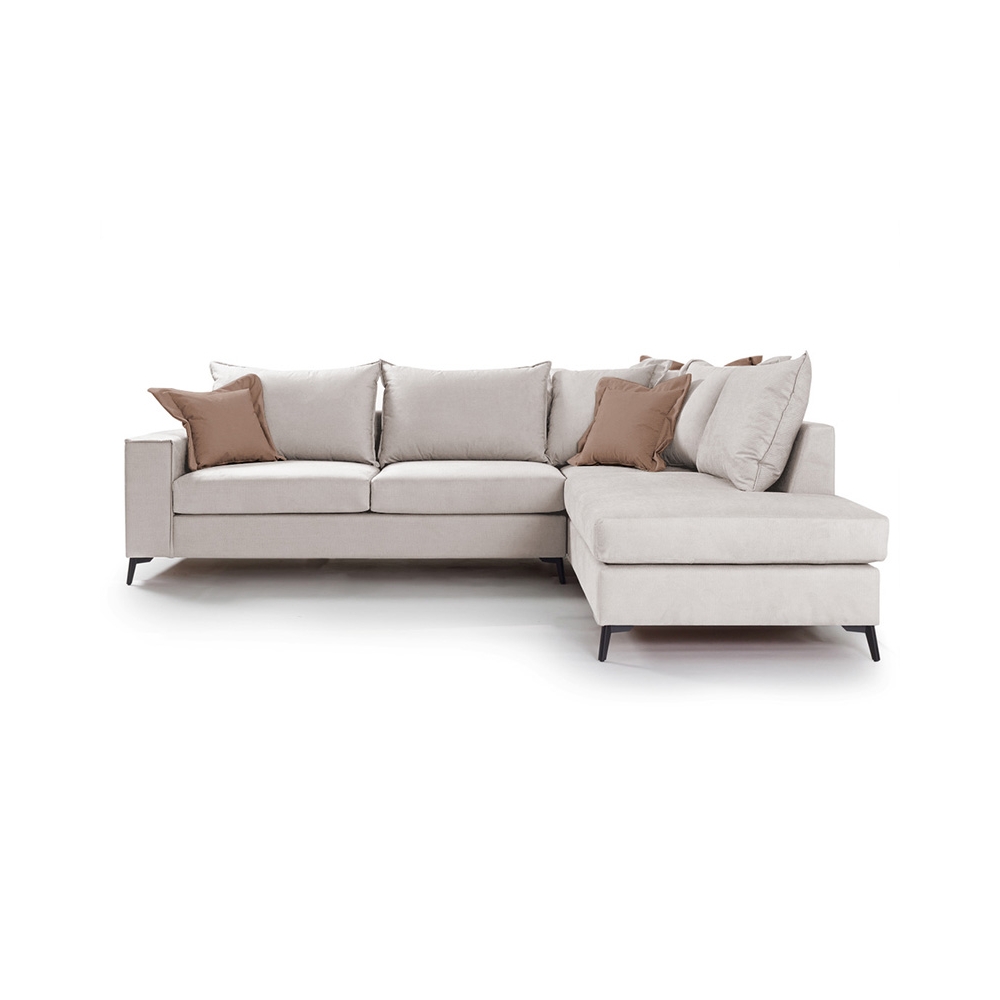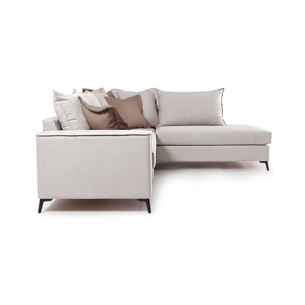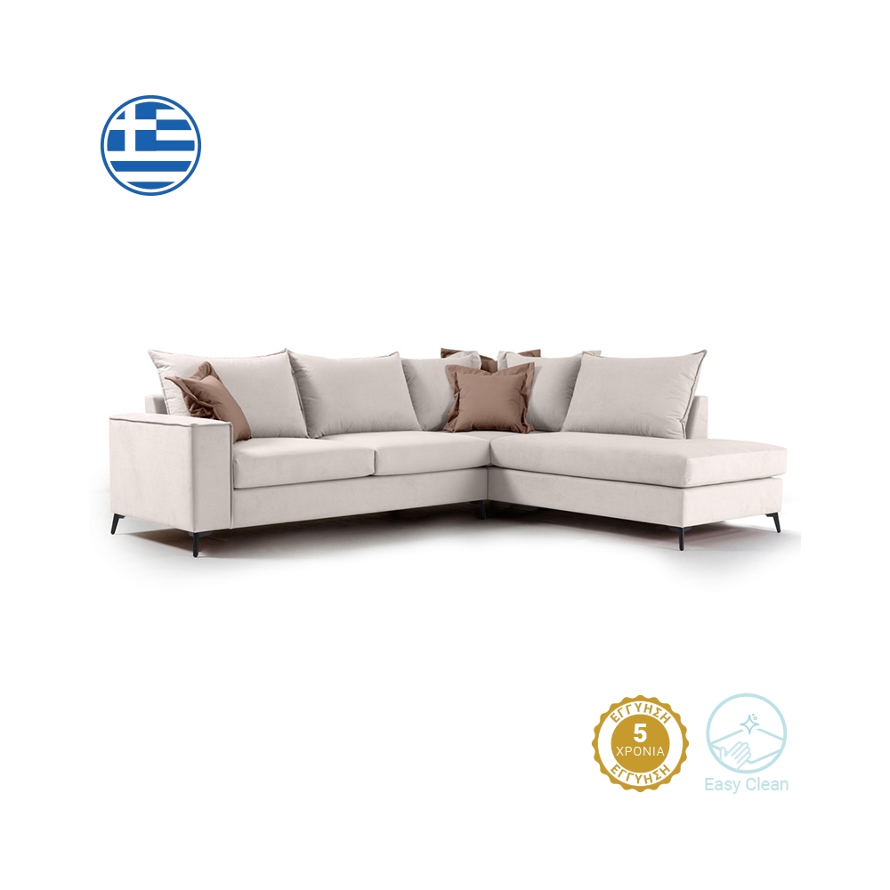 Τεχνικά χαρακτηριστικά: Κατασκευή από: - Σκελετό μοριοσανίδας, ξύλο λεύκας και επένδυση MDF + αφρολέξ - Μαξιλάρι καθίσματος αφρολέξ 400άρι plus, με διπλή βάτα ενισχυμένη με ελαστικές ίνες και μαξιλάρι πλάτης από 100% καθαρή σιλικόνη. - Ποδαρικό από υψηλής ποιότητας μέταλλο σε μαύρο χρώμα. - Φέρει επένδυση υφάσματος Easy Clean (90% αδιάβροχο) εξαιρετικής ποιότητας και αντοχής. Όλα τα μαξιλάρια (πλάτης και έδρας) έχουν φερμουάρ και μπορούν να πληθούν στους 30 βαθμούς. -Χρώμα καναπέ και μαξιλαριών πλάτης: Cream - Φέρει δύο διακοσμητικά μαξιλαράκια σε Mocha χρώμα.