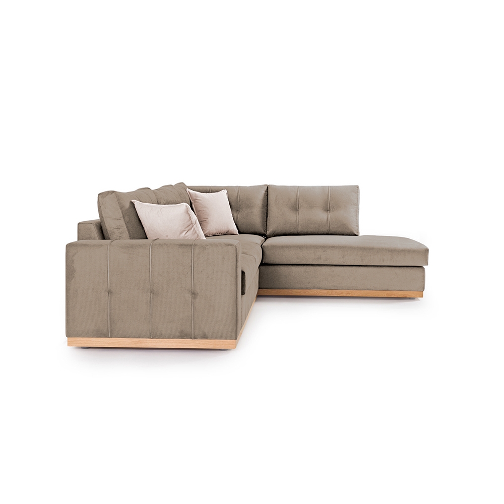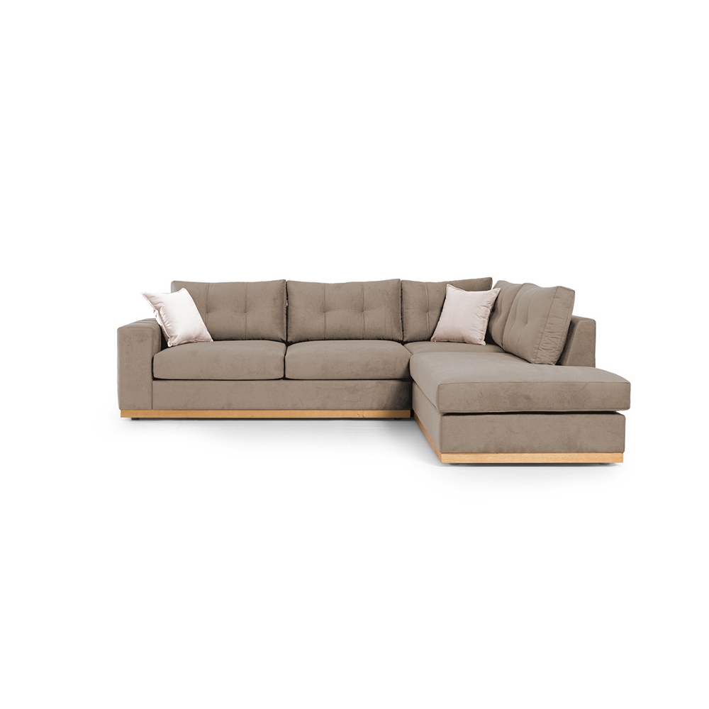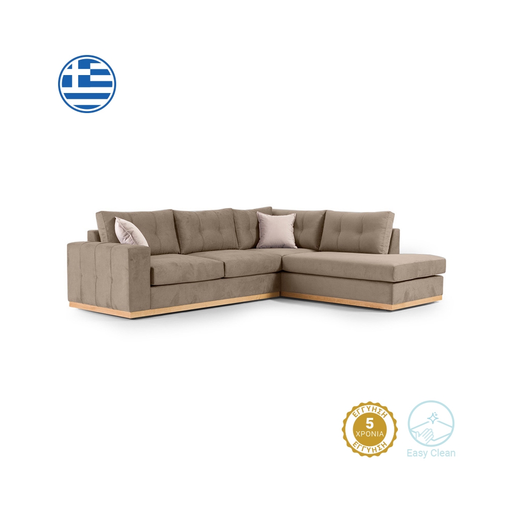 Τεχνικά χαρακτηριστικά: - Σκελετός μοριοσανίδας, ξύλο λεύκας και επένδυση MDF + αφρολέξ - Στήριξη σε μαύρο χαμηλό πόδι πολυπροπυλενίου, υψηλής αντοχής. - Μαξιλάρι καθίσματος αφρολέξ 400άρι plus, με διπλή βάτα ενισχυμένη με ελαστικές ίνες και μαξιλάρι πλάτης από 100% καθαρή σιλικόνη. - Φέρει επένδυση υφάσματος Easy Clean (90% αδιάβροχο) εξαιρετικής ποιότητας και αντοχής. Όλα τα μαξιλάρια (πλάτης και έδρας) έχουν φερμουάρ και μπορούν να πλυθούν στους 30 βαθμούς. -Χρώμα καναπέ και μαξιλαριών πλάτης: Mocha - Φέρει δύο διακοσμητικά μαξιλαράκια σε Cream χρώμα. -Περιμετρικά στη βάση φέρει επένδυση από ξύλο λεύκας σε φυσικό χρώμα.