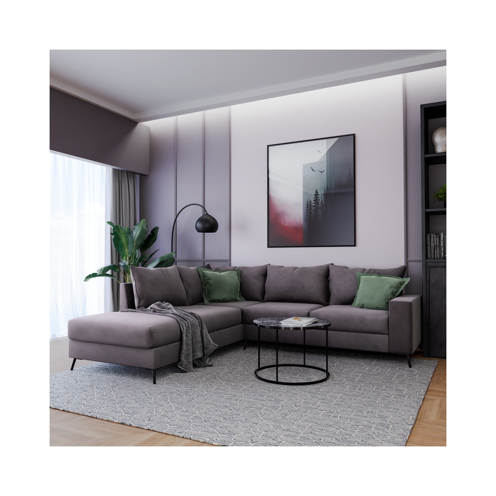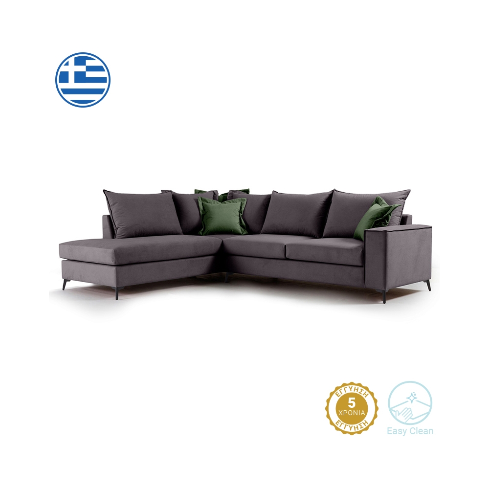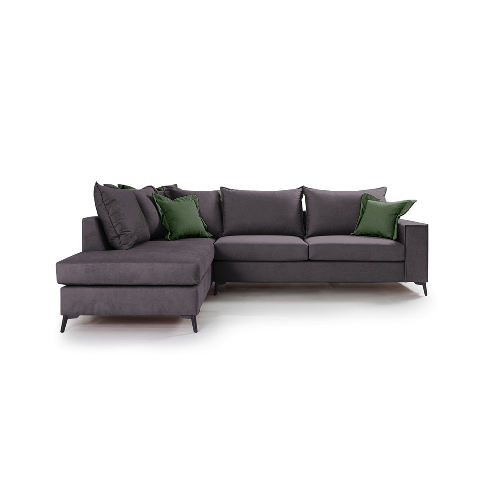 Γωνιακός καναπές δεξιά γωνία Romantic pakoworld ύφασμα ανθρακί-κυπαρισσί 290x235x95εκ