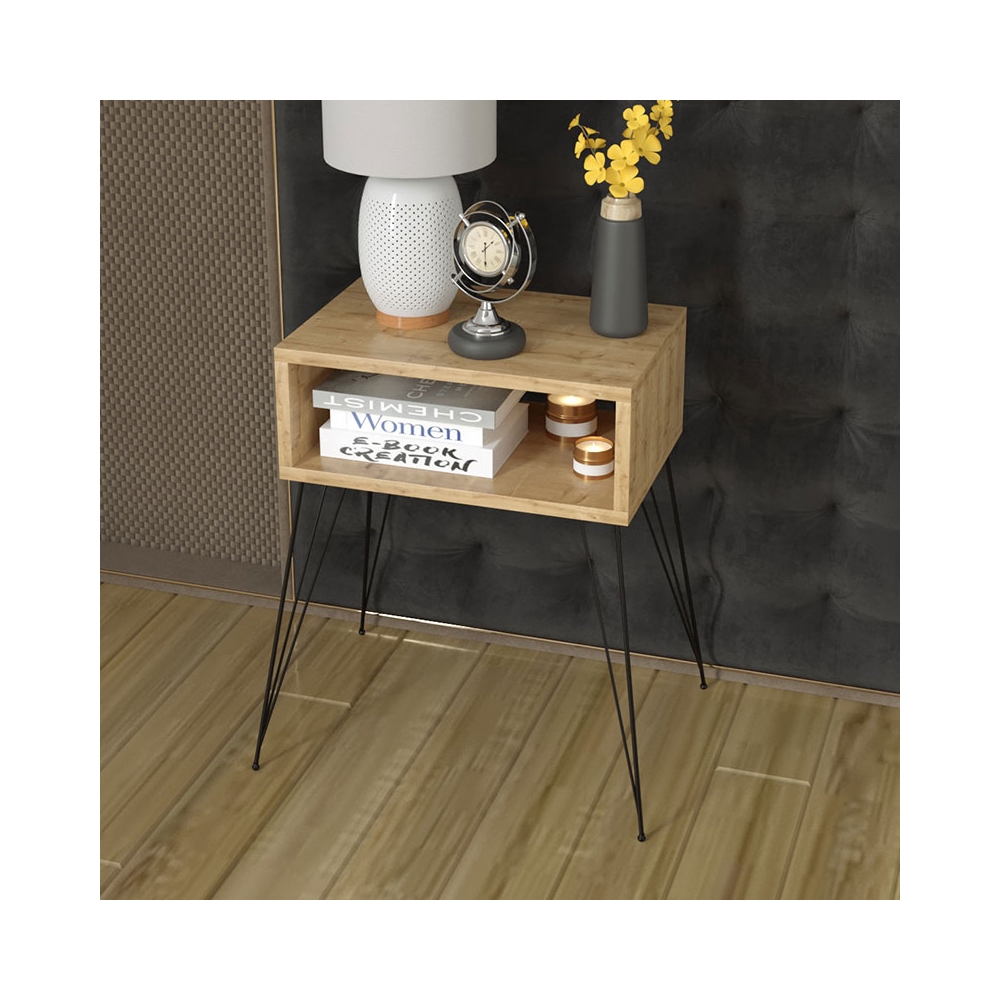 Κομοδίνο Naida pakoworld φυσικό-μαύρο 45x30x59εκ