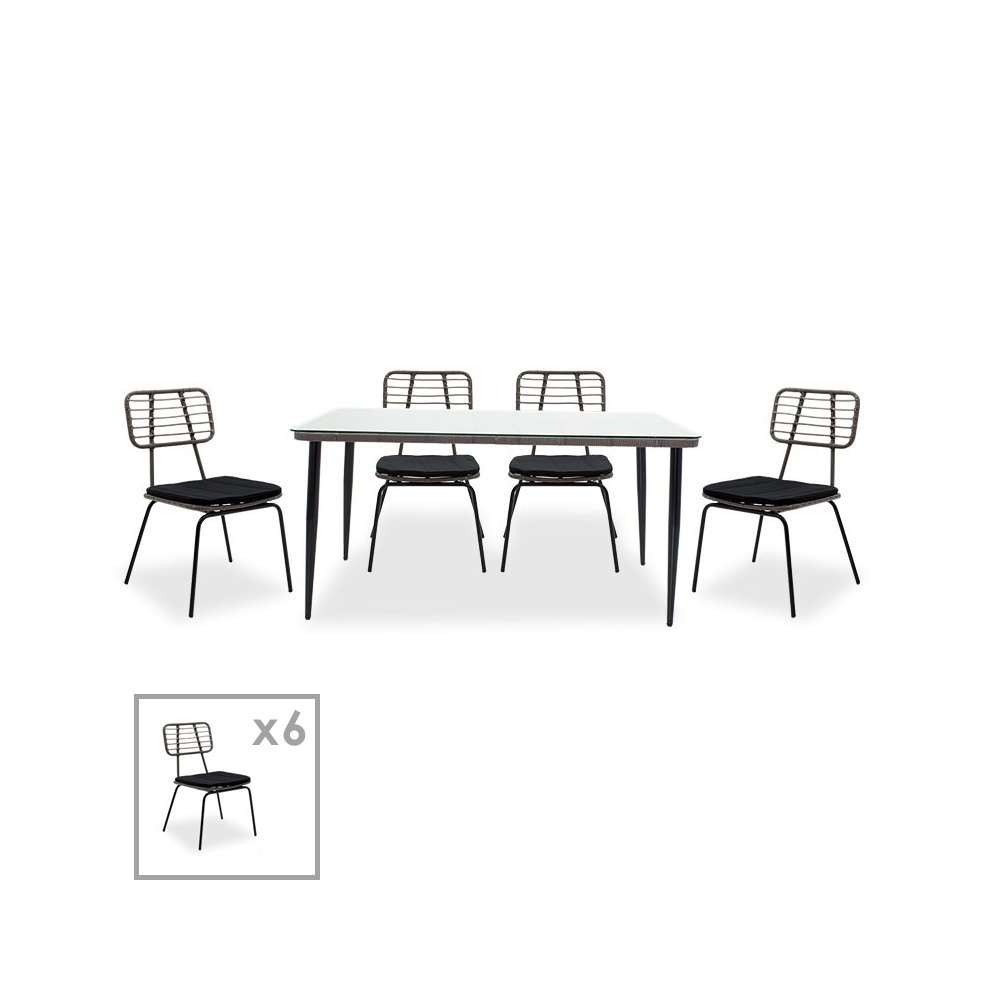 Το σετ περιλαμβάνει έξι πολυθρόνες και ένα τραπέζι.