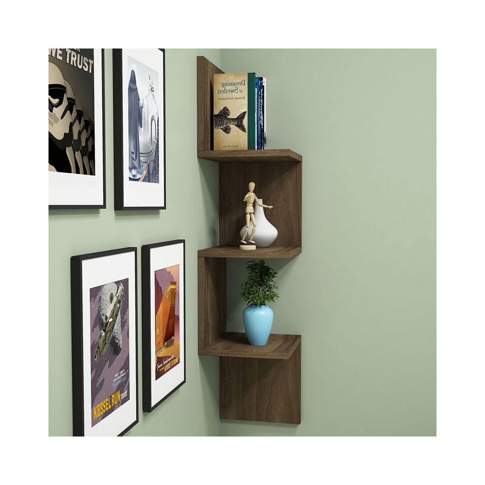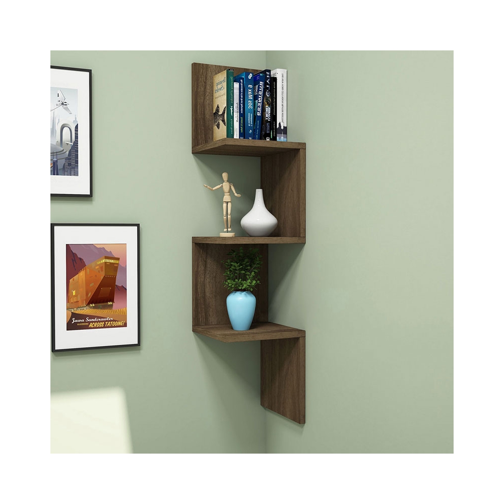 Ραφιέρα γωνιακή τοίχου Insta pakoworld καρυδί 25x25x105,5εκ