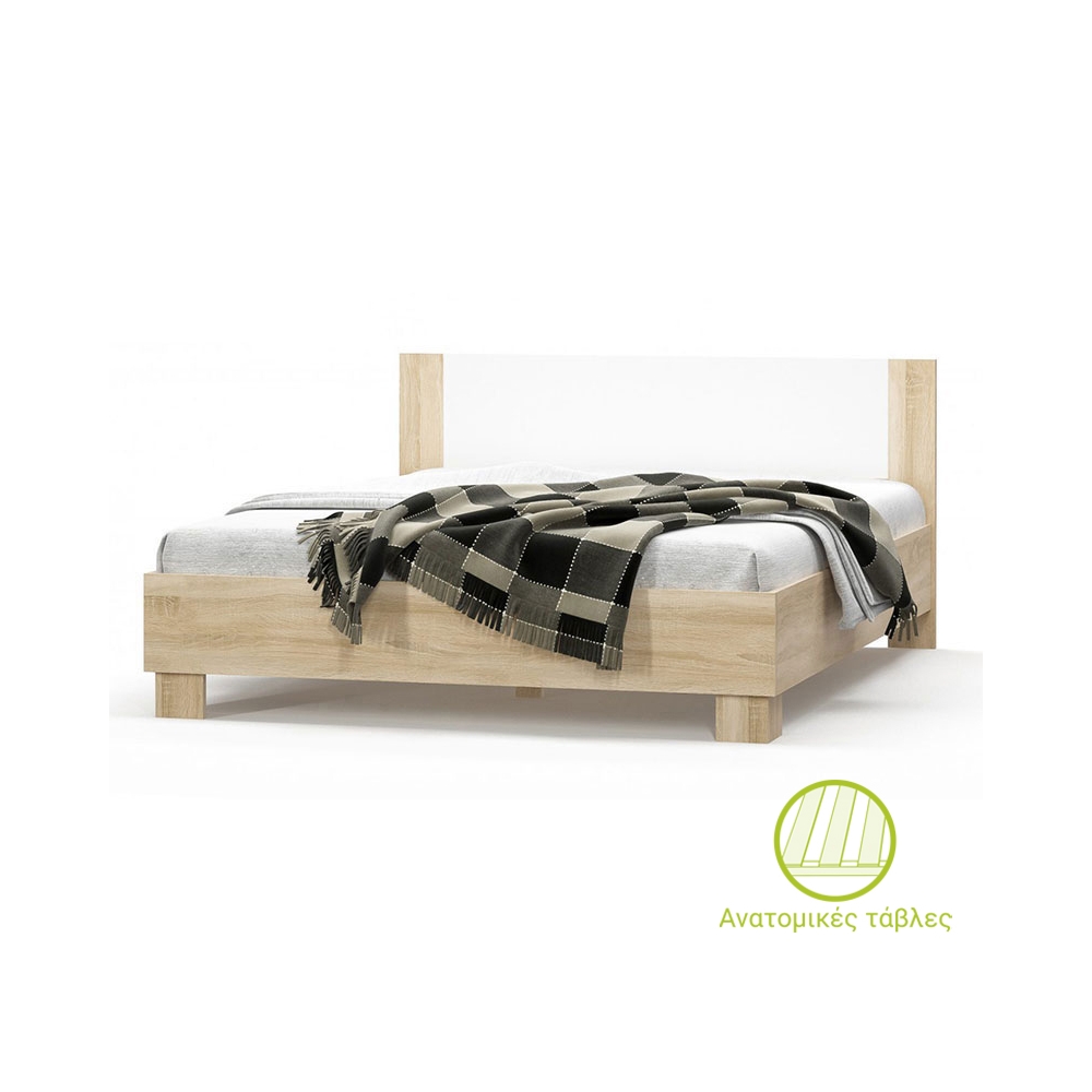 Κρεβάτι διπλό Geneva pakoworld φυσικό-λευκό 160x200εκ