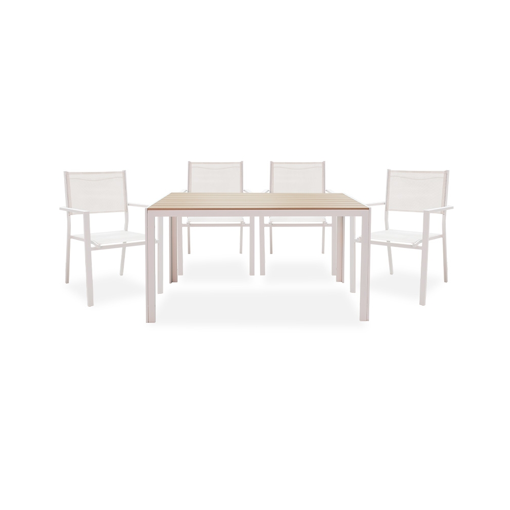 Τραπεζαρία Nares-Moly σετ 5τεμ pakoworld αλουμίνιο-textilene λευκό plywood φυσικό